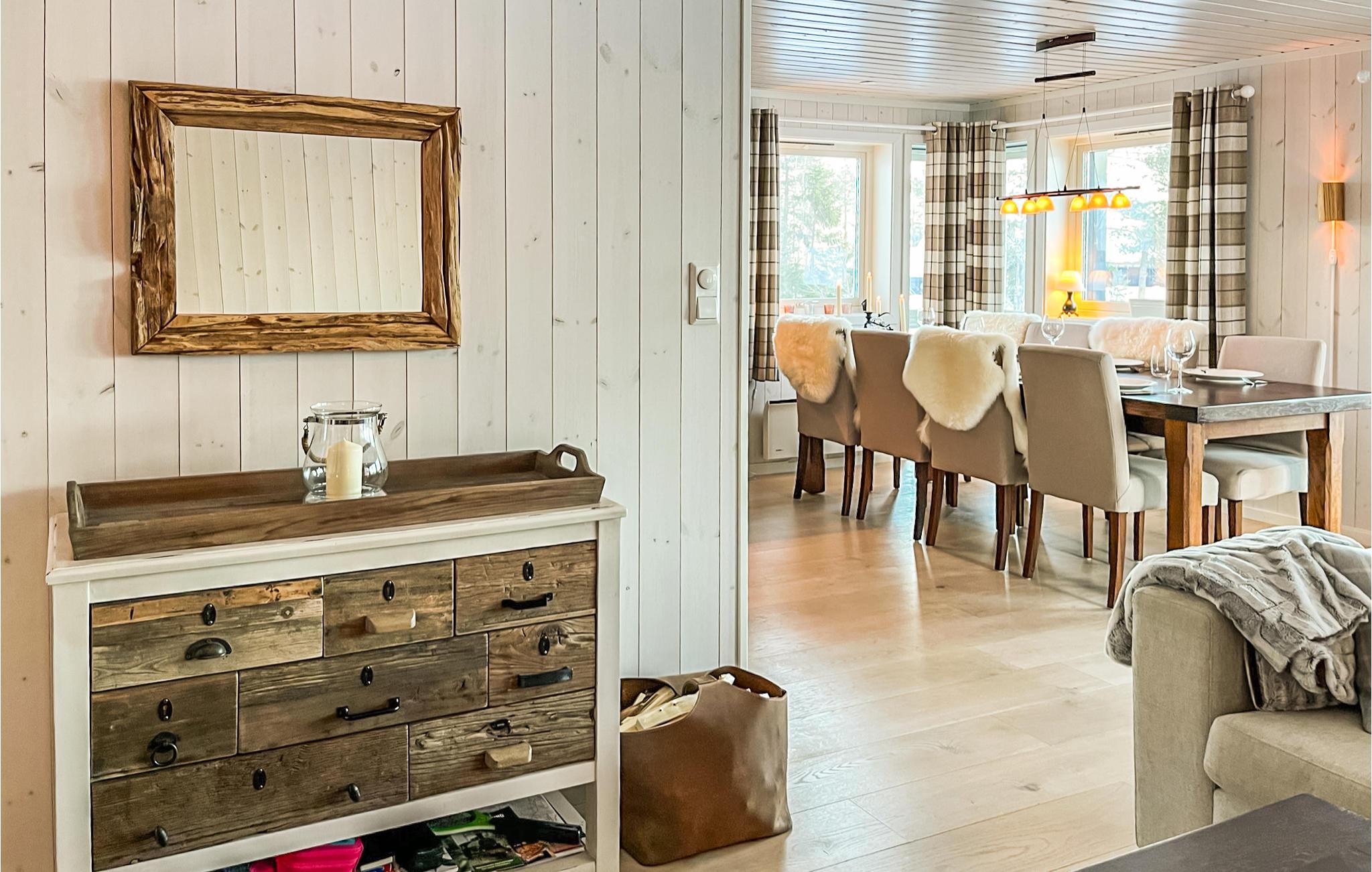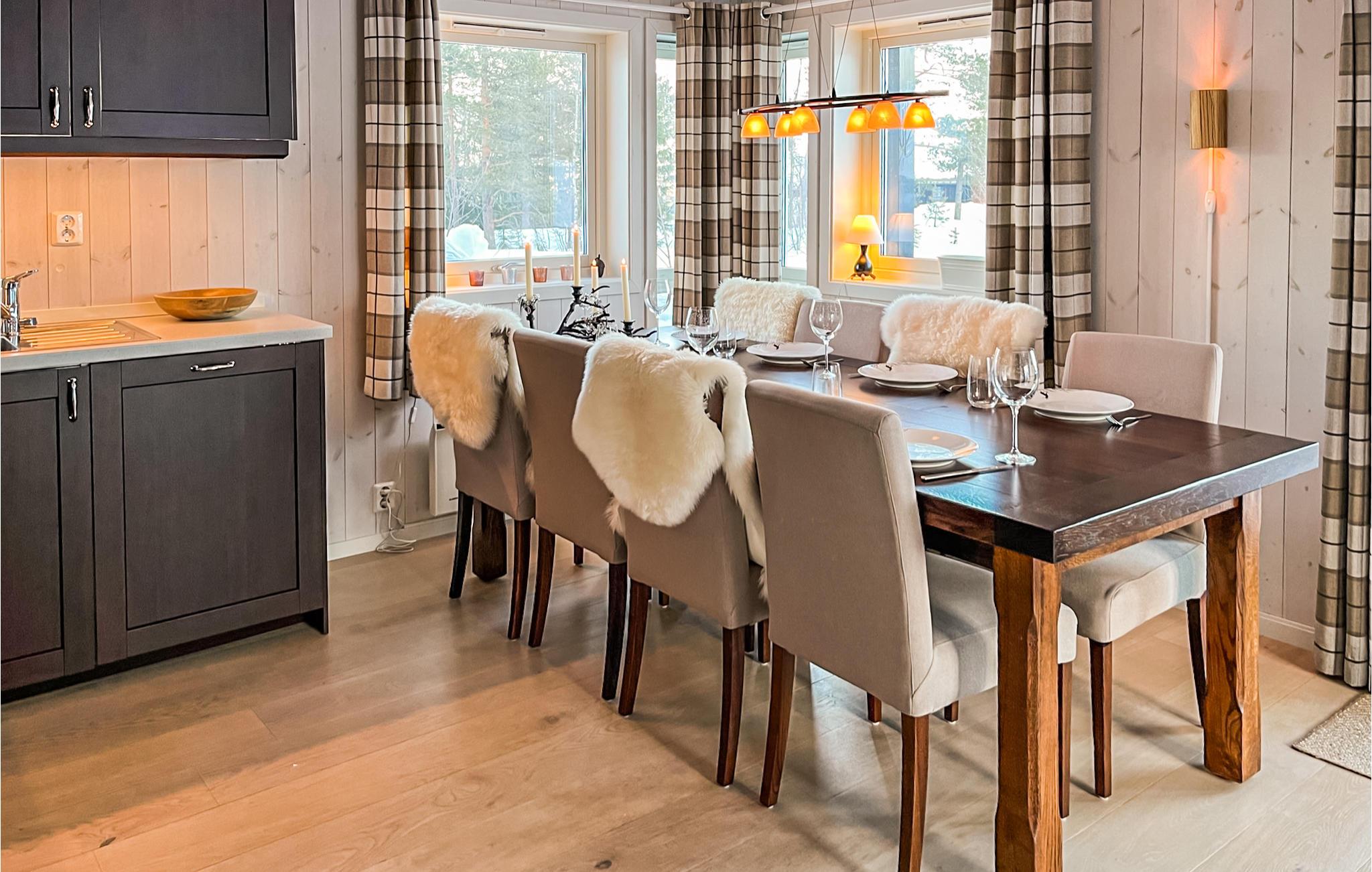 Entspannen Sie hier in hellen Räumen und stilvollem Ambiente und genießen Sie in vollen Zügen die gemeinsame Zeit sowie eine Umgebung, die hervorragende Bedingungen für Aktivitäten in der Natur zu jeder Jahreszeit bietet. Nach einem erlebnisreichen Tag können Sie am Esstisch gemeinsam Spiele spielen oder es sich auf dem Sofa gemütlich machen, im Kaminofen anfeuern und noch lange beim Prasseln der Flammen in wohliger Wärme zusammensitzen.