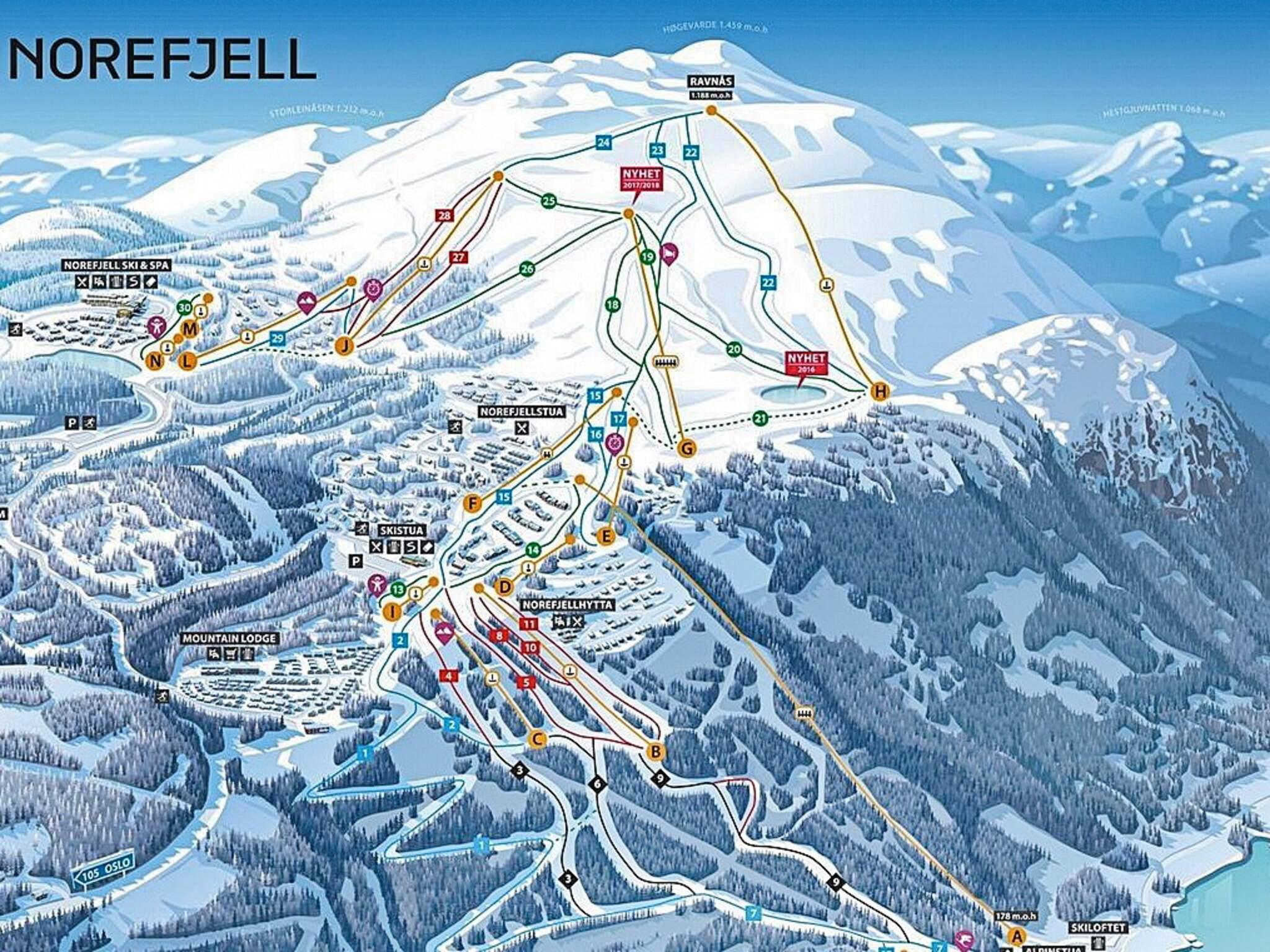 Das Skigebiet Norefjell verfügt über 14 Lifte und 31 Pisten. Leichte Loipe nur einen Steinwurf entfernt für diejenigen, die Langlaufen wollen.