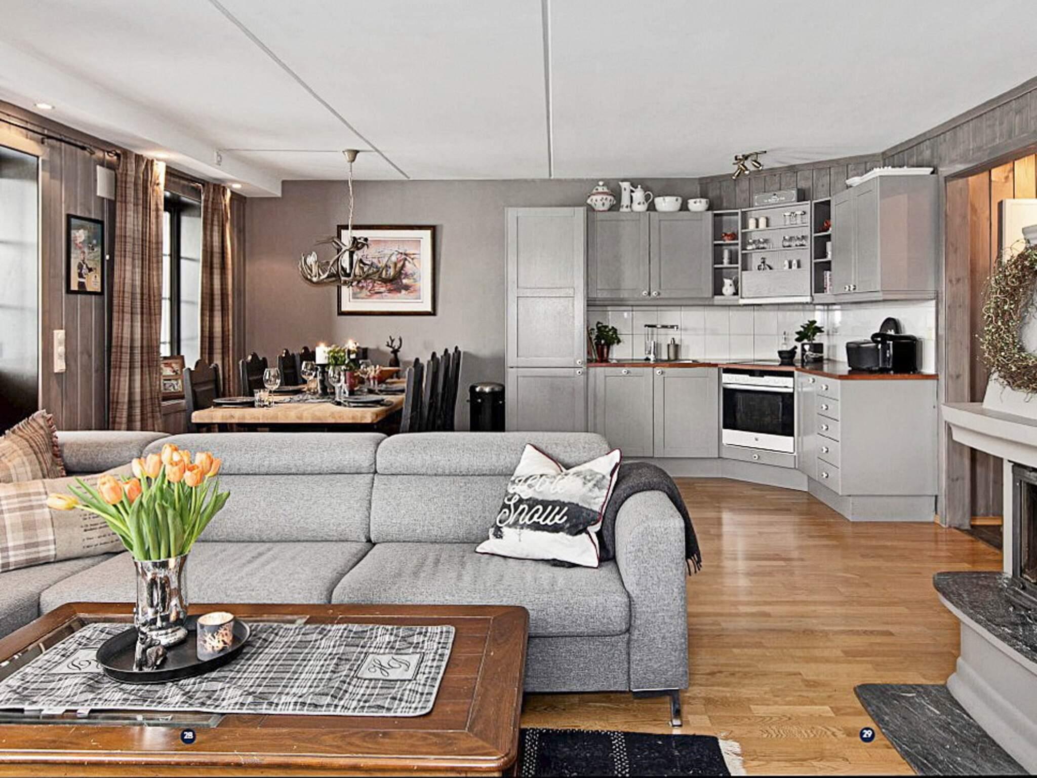 Attraktive Ferienwohnung mit Ski in / out. Die Wohnung bietet drei Schlafzimmer und liegt nur eine Minute zu Fuß von der alpinen Skipiste entfernt, mit herrlicher Aussicht auf den Krøderfjord!