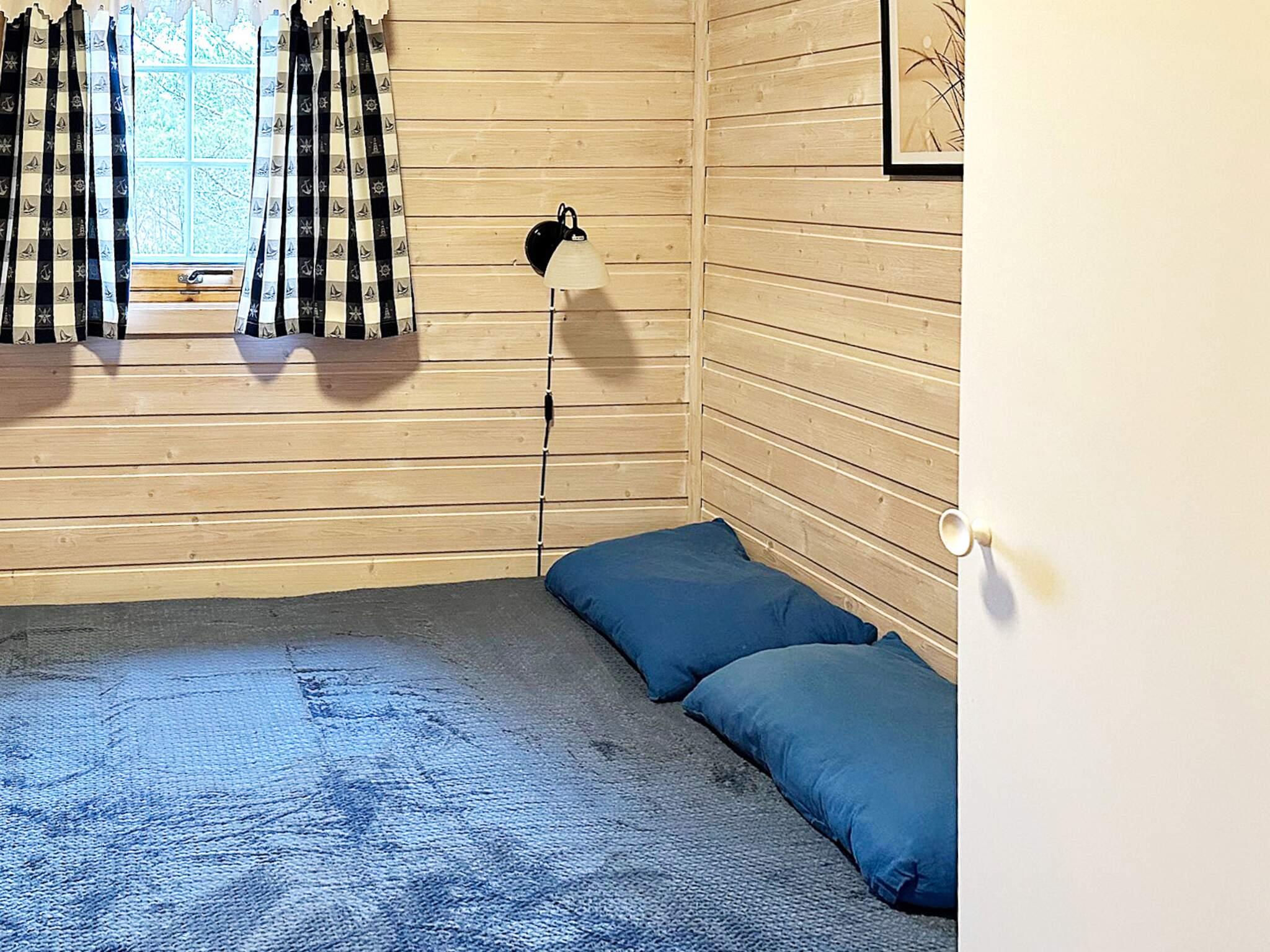 Das Ferienhäuschen steht zusammen mit zwei weiteren Hütten in einem Waldgebiet. Es gibt einen kombinierten Küchen-/Wohnbereich mit TV und u.a. Astra1 für deutsche und internationale Fernsehsender. WLAN per Glasfaser, 50-100 MB. In der Küche gibt es u.a. eine Mikrowelle und drei Herdplatten. Zudem Geschirrspüler und 100 l Gefrierschrank im Ferienhaus und zusätzlich ca. 100 l Gefrierschrank etwa 200 m vom Ferienhaus entfernt für den frischen Fang. Zwei Schlafzimmer; eines mit Doppelbett, das andere mit Etagenbett mit 120 cm breiter Liegefläche untern und 90 cm oben. Außen 7 m2 kleine Terrasse.