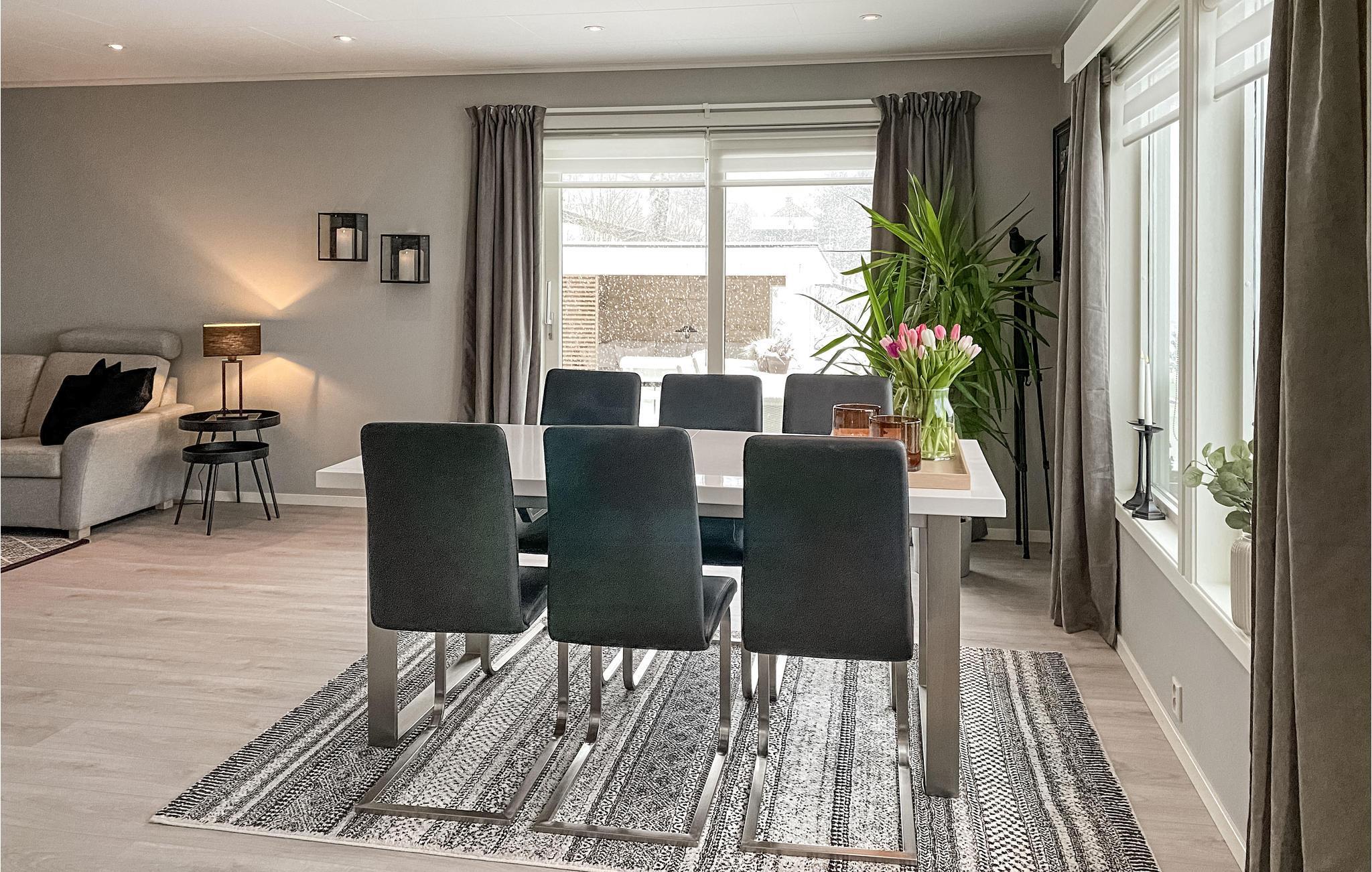 genießen Sie einen tollen Urlaub in diesem modernen und geräumigen Haus, das Ihnen alles bietet, was Sie sich für einen unbeschwerten Urlaub wünschen. Der große Wohnraum wird zum natürlichen Treffpunkt Ihrer Familie, wo Sie zusammen kochen, essen, spielen und entspannen können. Auch der schöne Außenbereich mit überdachter Terrasse lädt Sie zum Verweilen im freien ein und lässt Ihren Blick auf die wunderschöne Fjordlandschaft schweifen, die Sie umgibt.