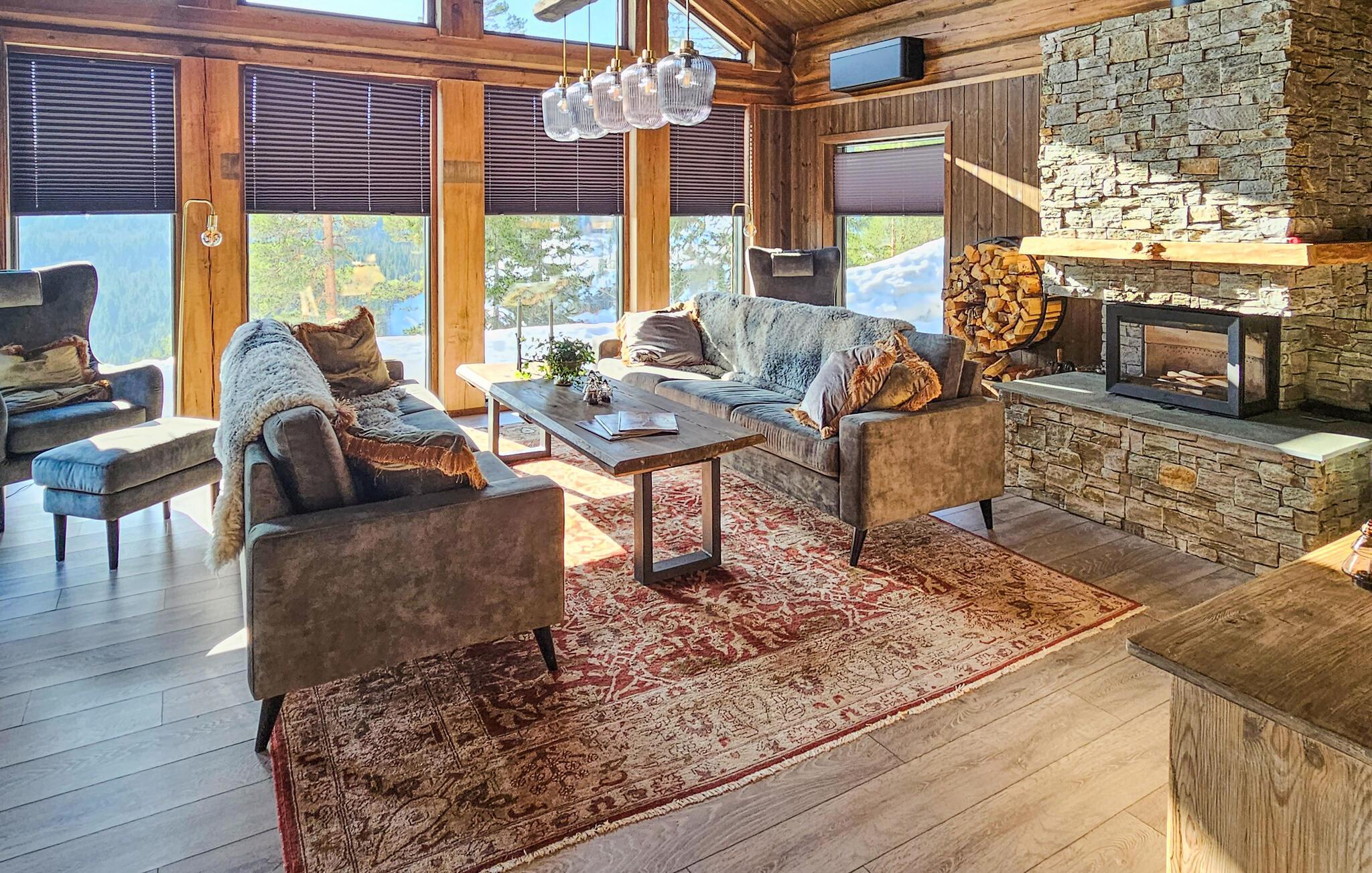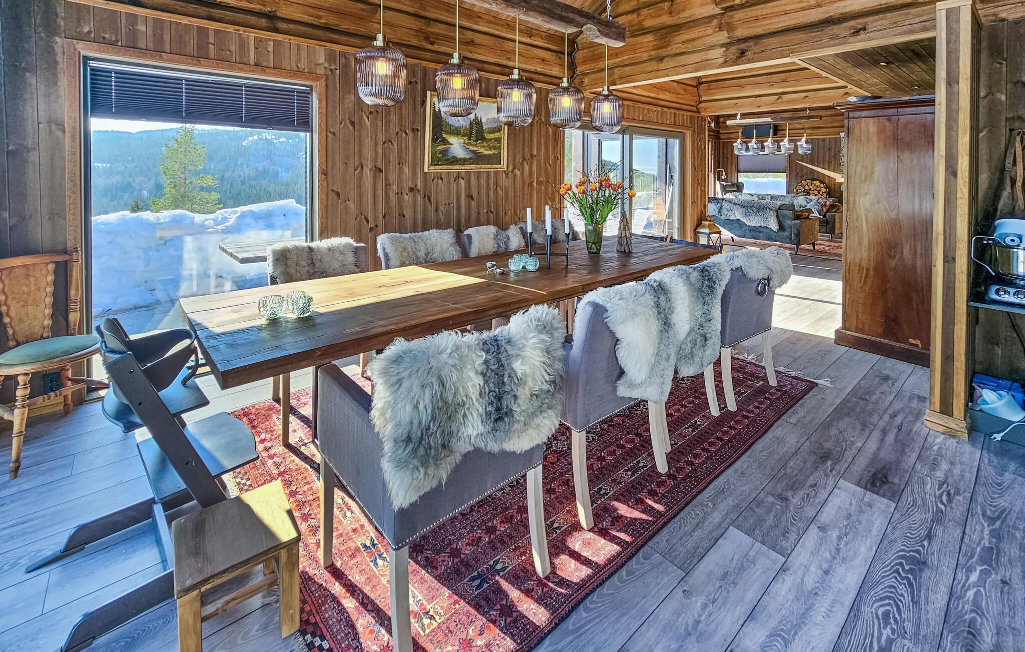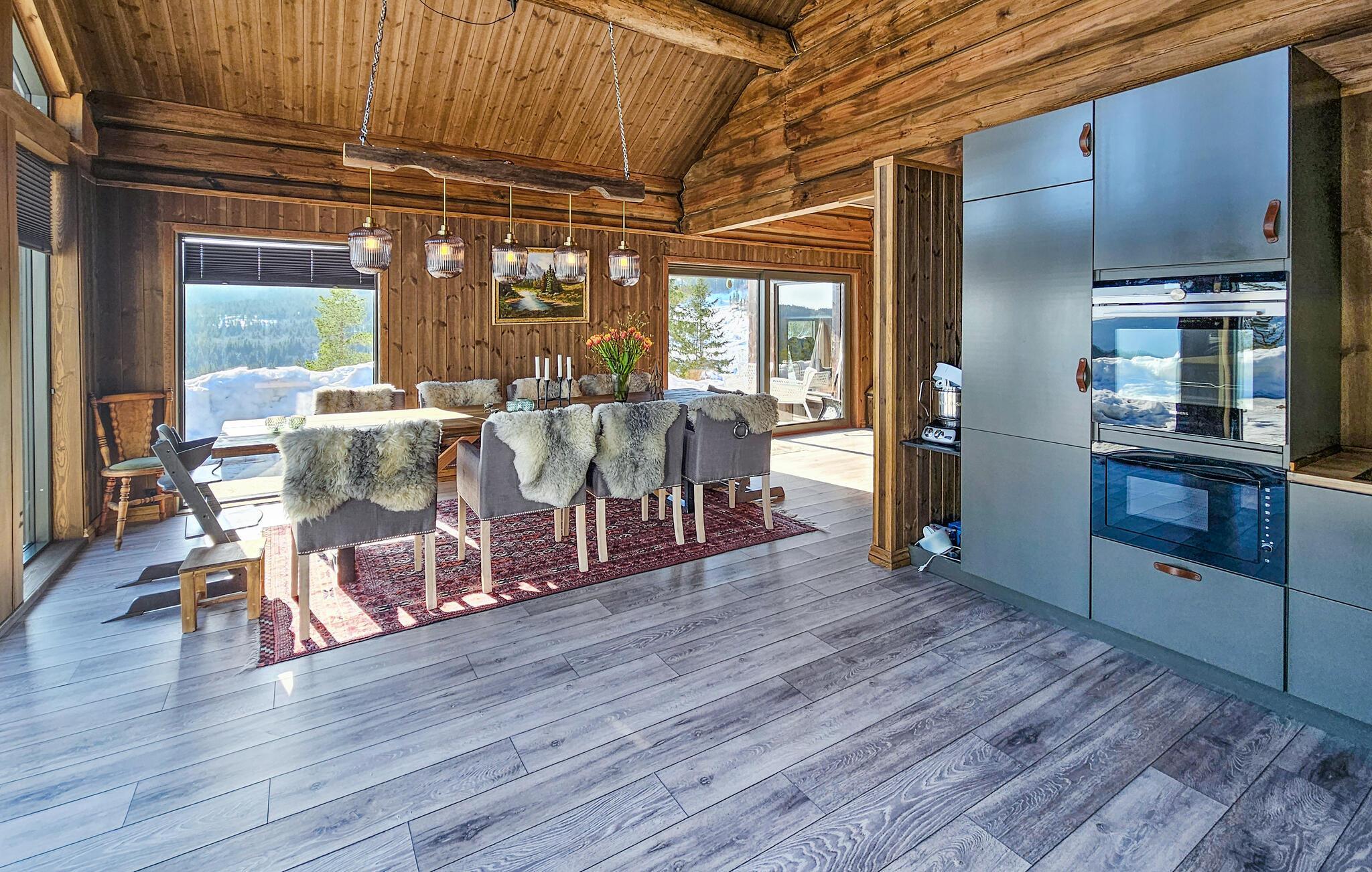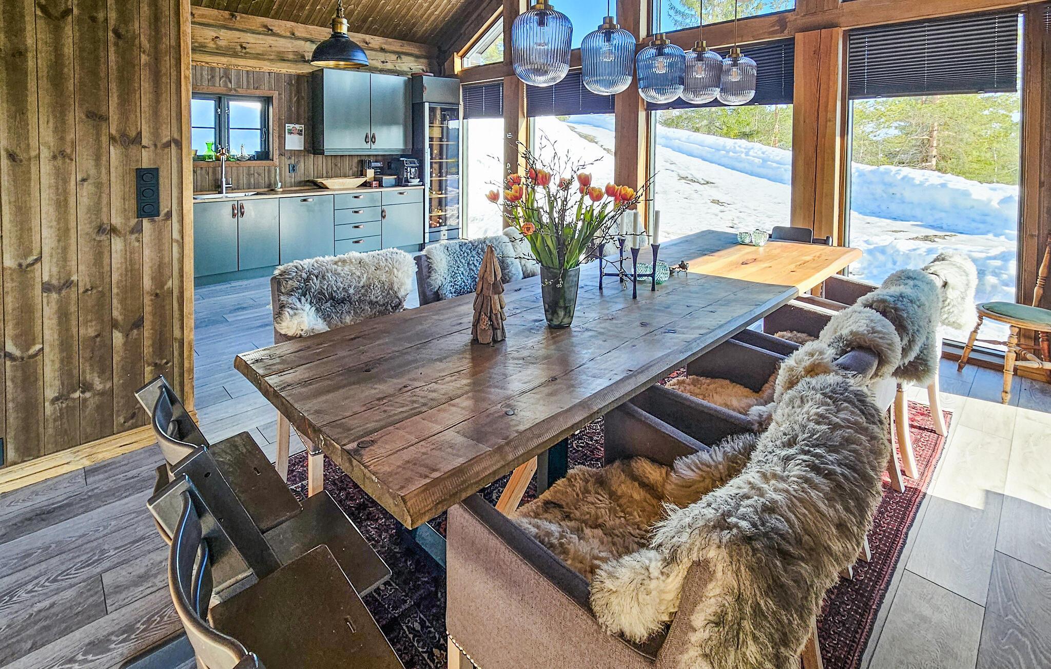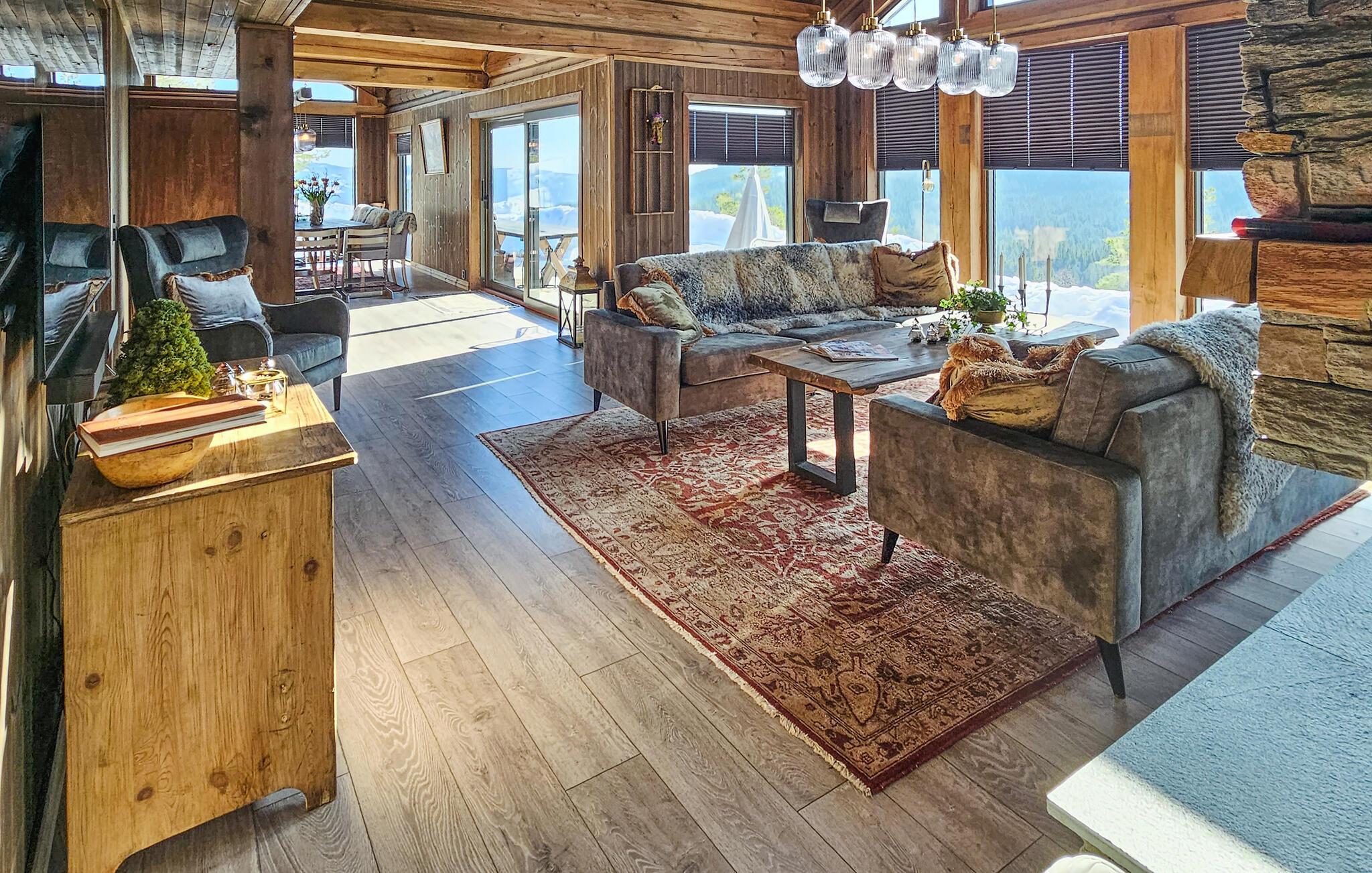 In der Gebirgslandschaft des Skrim-Fjells gelegen, erwartet Sie dieses Ferienhaus mit einem hohen Standard. Es vereint authentisch rustikalen Charme mit gemütlicher Atmosphäre und bildet den perfekten Ausgangspunkt für unvergessliche Urlaubserlebnisse. Die Innenräume, geprägt von Naturholz und einer warmen Farbpalette, laden zum Verweilen und Entspannen ein. Verleben Sie hier gemütliche Stunden mit Ihrer Familie oder einer größeren Freundesgruppe. Ganz gleich, ob Sie auf den komfortablen Sofas in einem Buch schmökern oder sich bei einem Film entspannen, hier spüren Sie die Ruhe der Natur. Dank der großen Fenster sind Sie der umliegenden Berglandschaft ganz nahe.