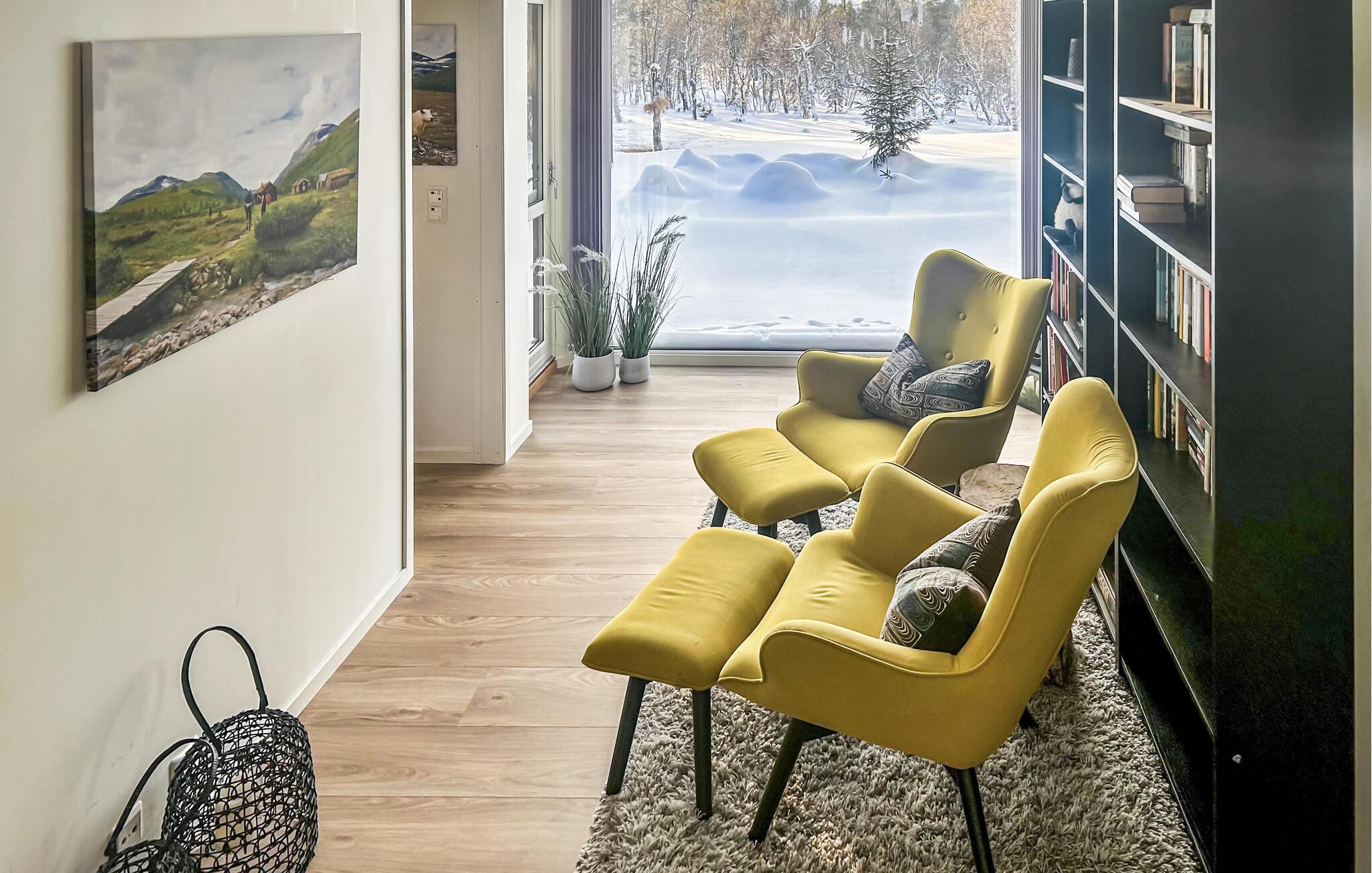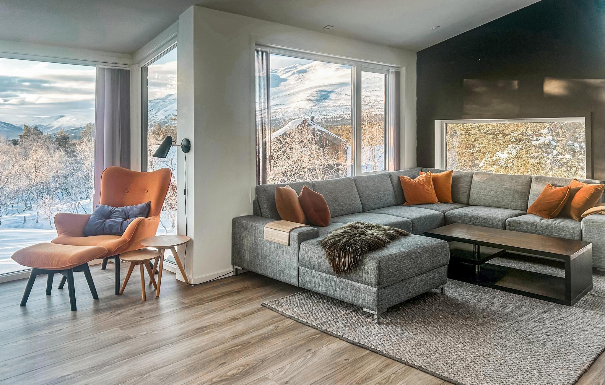 Willkommen in diesem geschmackvoll möblierten Ferienhaus in Oppdal, in dem großzügige Panoramafenster die eleganten Räumlichkeiten mit viel natürlichem Tageslicht durchfluten. Nehmen Sie auf den gemütlichen Sesseln Platz, vertiefen Sie sich in ein Buch oder entspannen Sie nach einer ausgedehnten Wanderung in der Sauna. Verbringen Sie auf der bequemen Sofalandschaft gemeinsame Zeit mit Ihren Liebsten und kochen Sie Ihre Lieblingsgerichte in der modernen, komplett ausgestatteten Küche mit einladendem Essbereich.