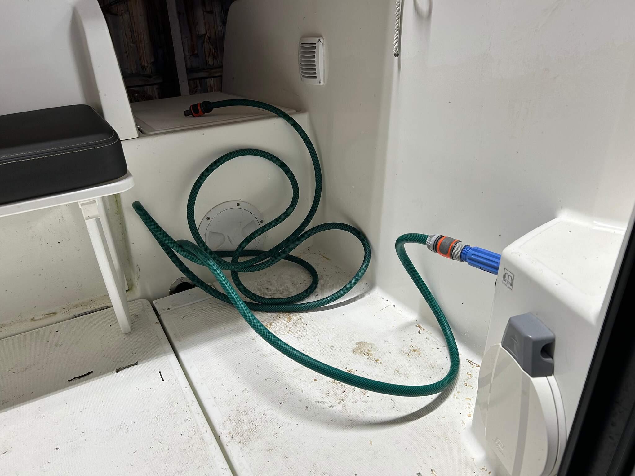 Etwa 500 m bis zum Schwimmsteg im kleinen Bootshafen, wo das Boot bereit liegt. Dort auch hauseigener 12 m2 großer Filetierschuppen für Fisch mit fließend Wasser und Licht sowie Strom inklusive, Werkbankplatz für diejenigen, die ihre eigene Vakuummaschine mitbringen, Staufläche für Angelausrüstung etc. Vor Ort viele gute Angelplätze.