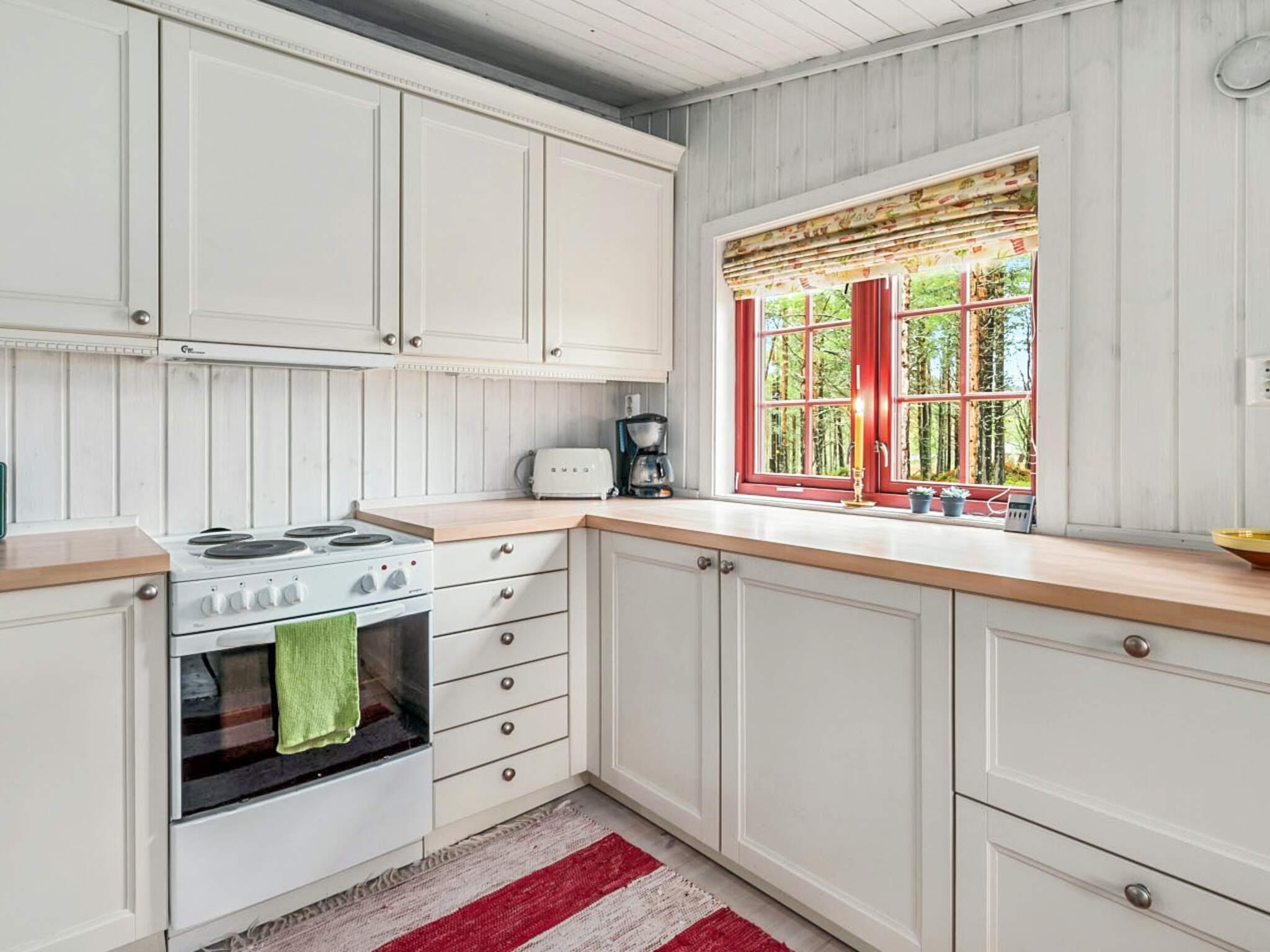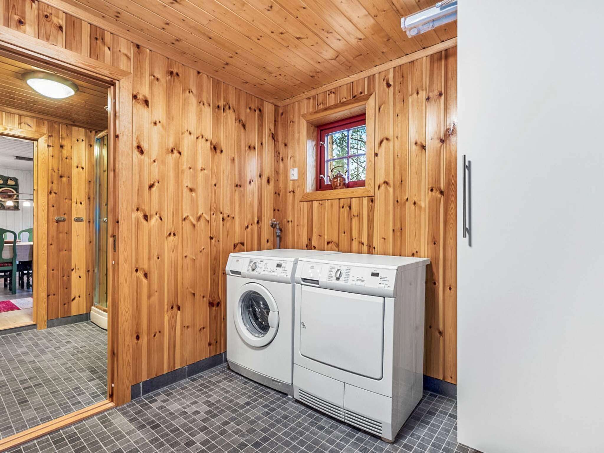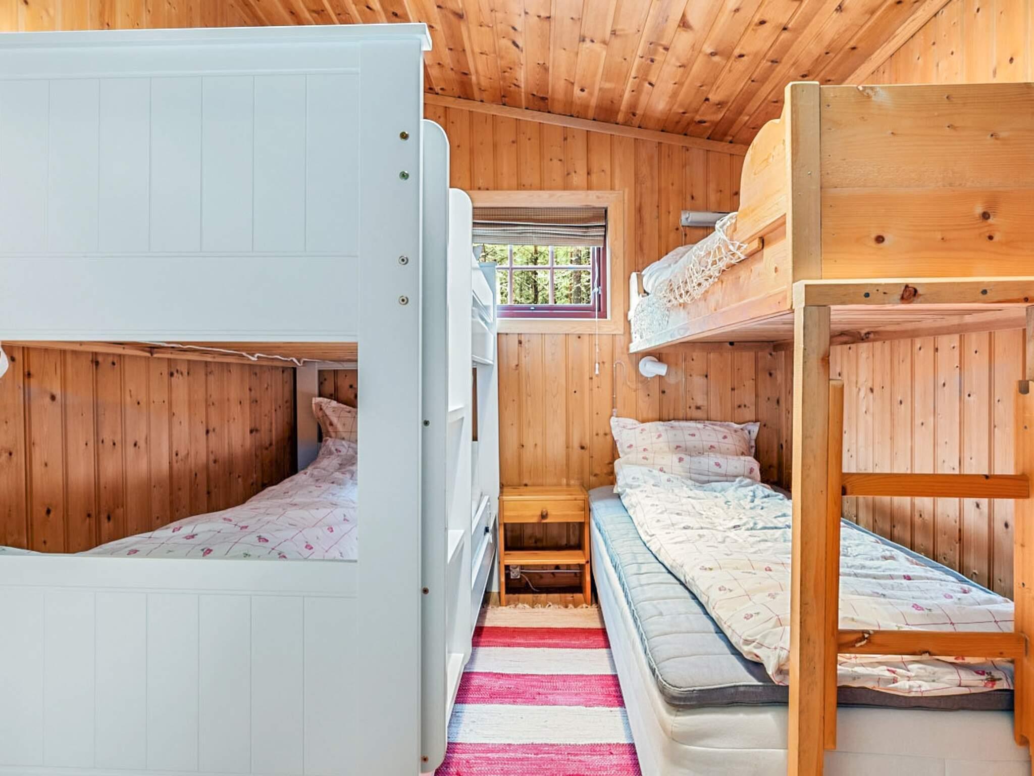 In der Hütte liegen alle Räume auf einer Ebene mit Veranda, Badezimmer, Waschküche, Küche, Wohnzimmer und zwei Schlafzimmern. Einfacher Zugang entweder über die Haupttür in den Flur oder direkt in den Wasch-/Trockenraum mit Waschmaschine, Trockner und großem Waschbecken. Großes Badezimmer mit Duschkabine. Fußbodenheizung in Waschküche/Badezimmer. Helles, gemütliches Wohnzimmer mit TV/Holzofen. Große Küche mit Esstisch und viel Platz für alle. Schlafzimmer 1 hat zwei Einzelbetten, Schlafzimmer 2 hat 2 Etagenbetten mit 4 Kojen, ein Bett ist nur 60 cm breit und daher am besten für ein Kleinkind geeignet. In der Hütte befindet sich auch ein Kinderbett. Bettwäsche muss mitgebracht werden.