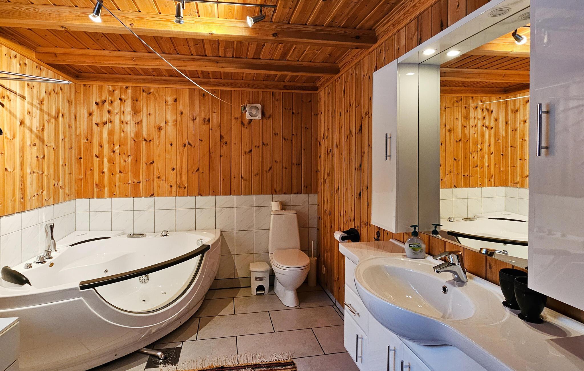 Dieses komfortable Ferienhaus liegt eingebettet in eine malerische Naturlandschaft und bietet neben viel Ruhe eine gemütliche Wohlfühlatmosphäre in seinen holzgetäfelten Räumlichkeiten. Schwingen Sie den Kochlöffel in der offenen, gut ausgestatteten Küche und genießen Sie Ihre Mahlzeiten in der behaglichen Essecke. Entfachen Sie den Kamin und machen Sie es sich auf der großen Sofalandschaft bequem.
