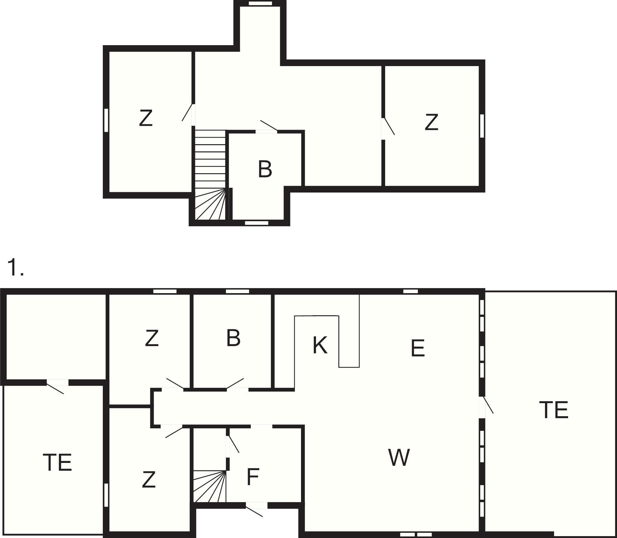 4 Schlafz.: (1DB)+(1DB+1B)+(2B)+(1DB+1B), Kinderbett