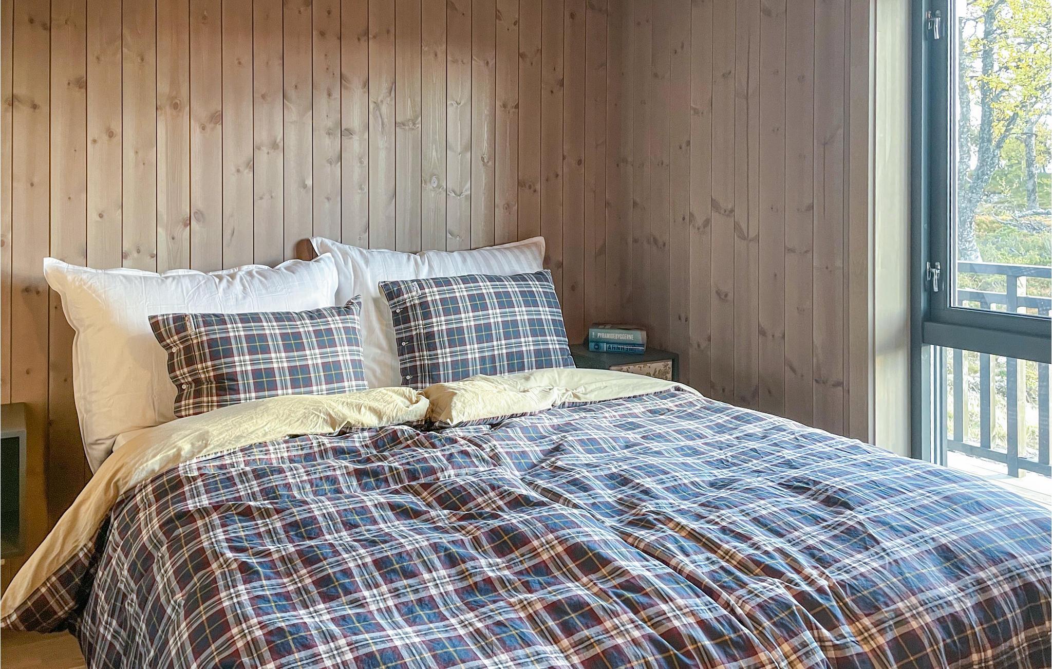 Das schöne Ferienhaus ist luftig geschnitten, mit großen, vom Boden bis zur Decke reichenden Fenstern, die viel Licht hereinlassen. Hier findet jeder aus Ihrer Großfamilie einen Lieblingsplatz und wird die meiste Zeit den Ausblick in die Natur genießen. Sie können aber auch im großen Wohnraum die gesellige Familienzeit beim Kochen, Spielen oder Entspannen zusammen verbringen. Schüren Sie am Abend ein wärmendes Kaminfeuer an, blicken hinaus zum Sternenhimmel oder schauen Ihren Lieblingsfilm an. Das schöne Holzhaus hat eine überdachte Terrasse und eine Veranda auf der gesamten Vorderseite. Hier können Sie die Aussicht genießen und entspannen.