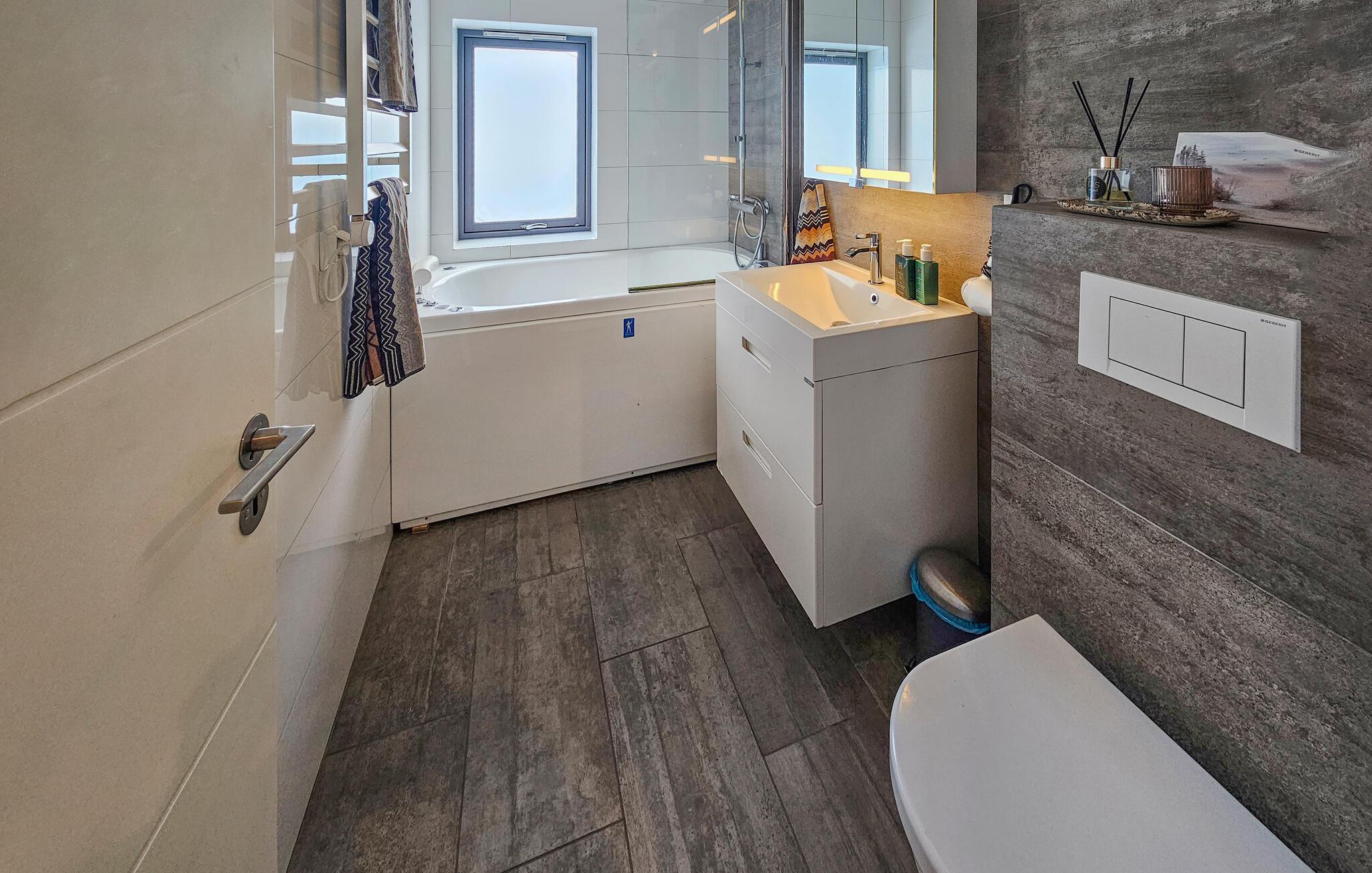- WC mit warmem und kaltem Wasser, Dusche und Badewanne
