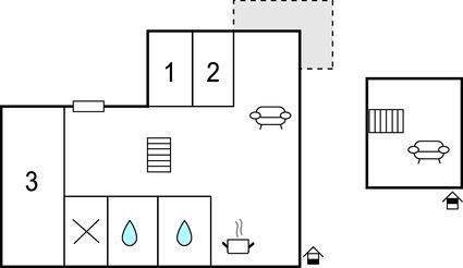 Schlafzimmer (nr. 1) - 1 Schlafmöglichkeit. (Einzelbett(en)). 3 Schlafmöglichkeiten. (Etagenbett).