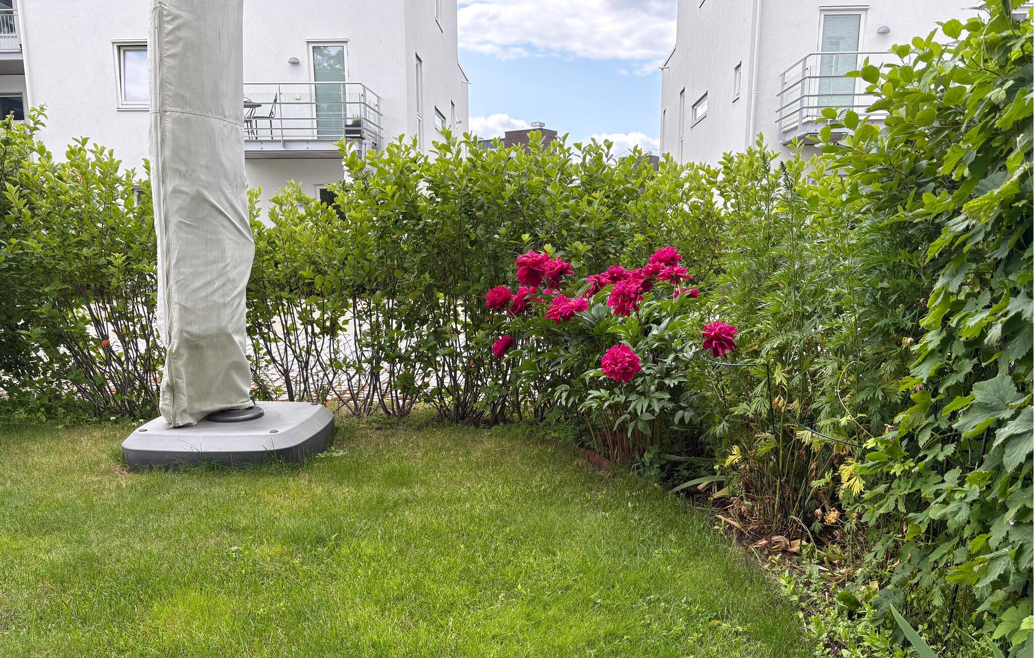 Genießen Sie ein paar Sonnenstrahlen auf der Terrasse mit eigenem Gartenstück und sehen Sie den Kindern beim Spielen zu.