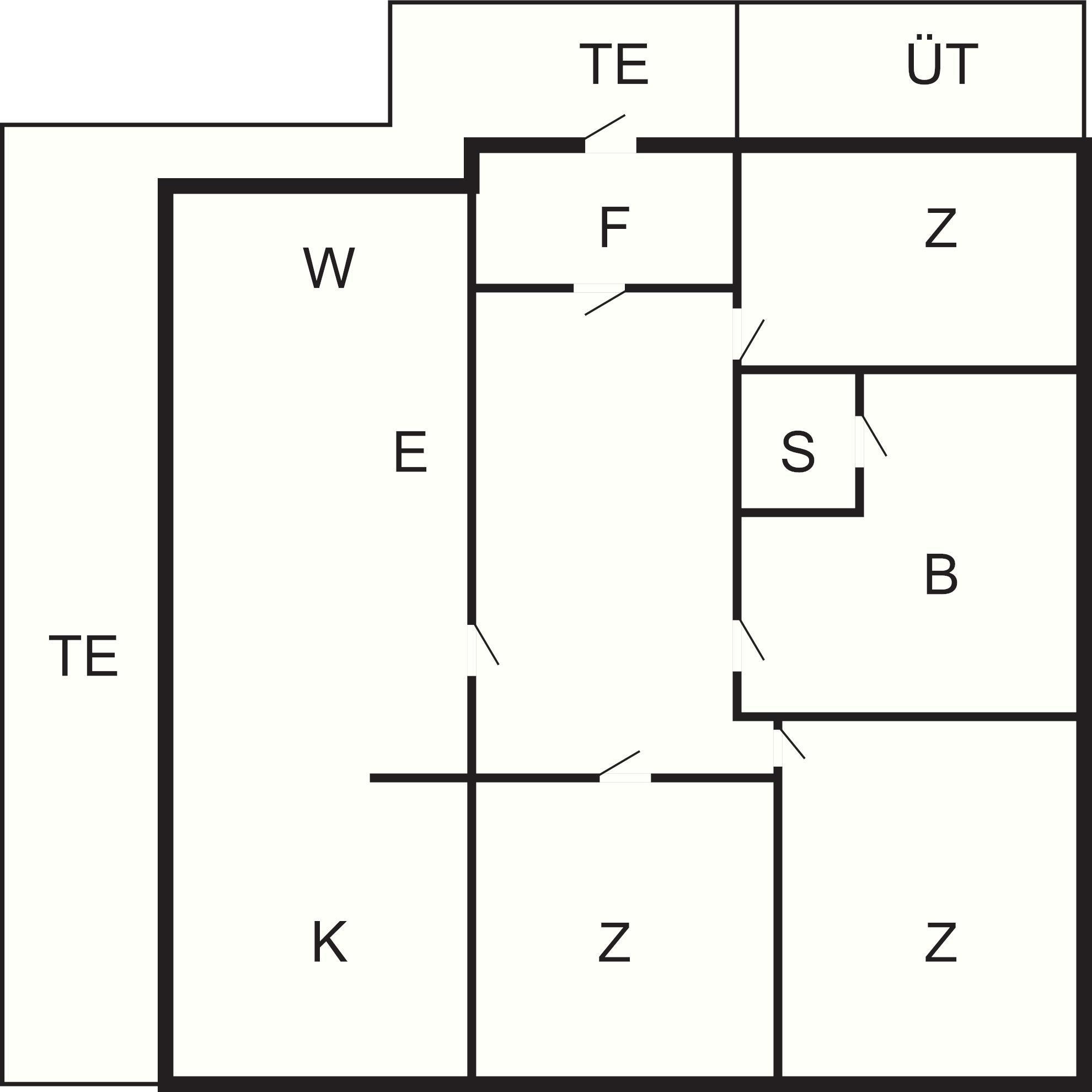 Off. Küche: E-Herd, Kühlschr. m. Gefrierfach, Mikrow., Abzugsh., Kaffeem.