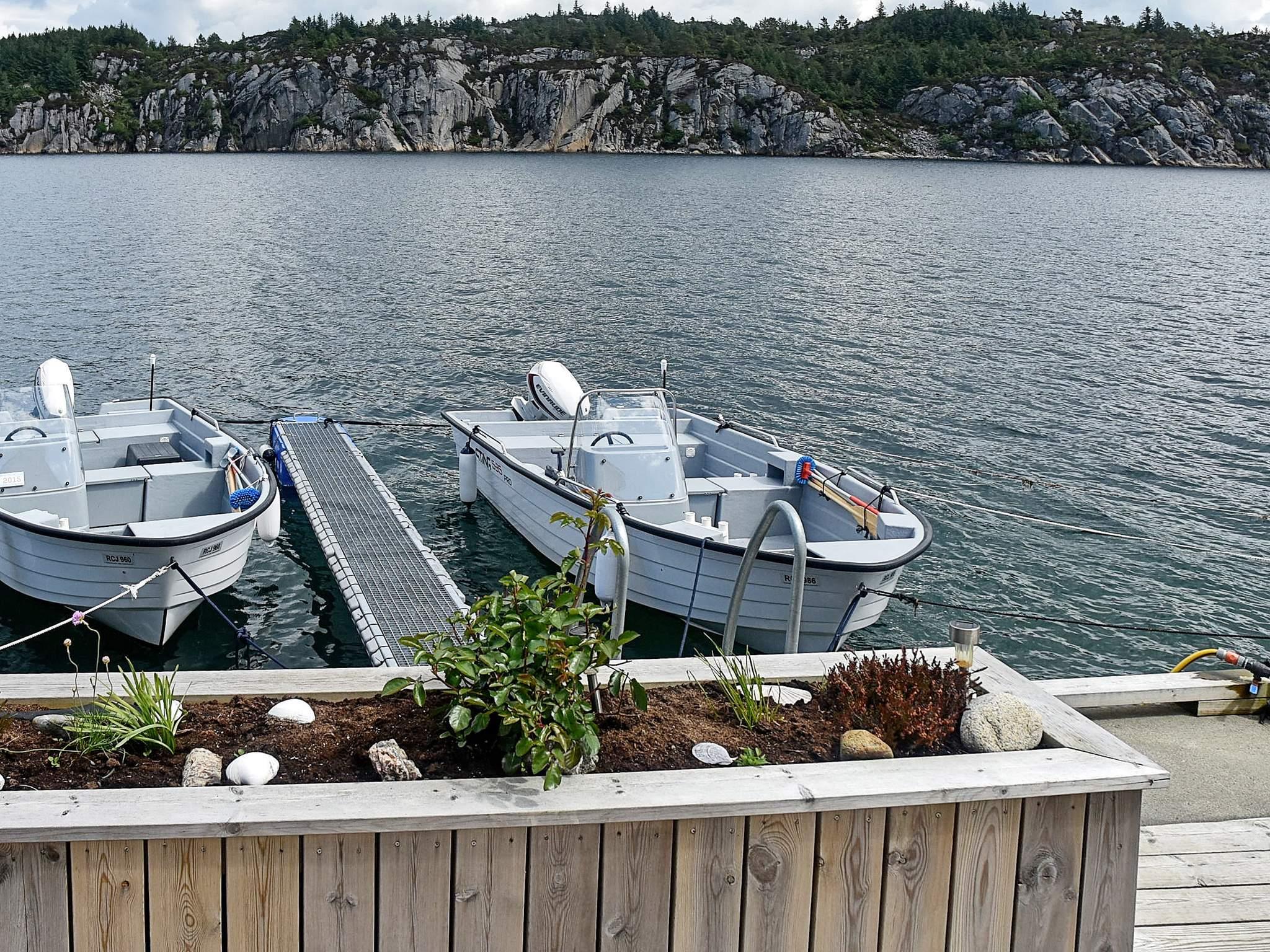 Zwei identische Boote mit 18 Fuß (Typ Sting 535 Pro) und 40 PS 4-Takt Motor (Evinrude) sowie Kartenplotter/GPS/Echolot (Garmin Echomap 50-er Serie), 4 Rutenhaltern und Schwimmwesten sind zu mieten. Der nur 5 m entfernte Fjord Urangsvågen hat viele Zuläufe und das Gebiet gilt als besonders fischreich, und zwar das ganze Jahr hindurch.