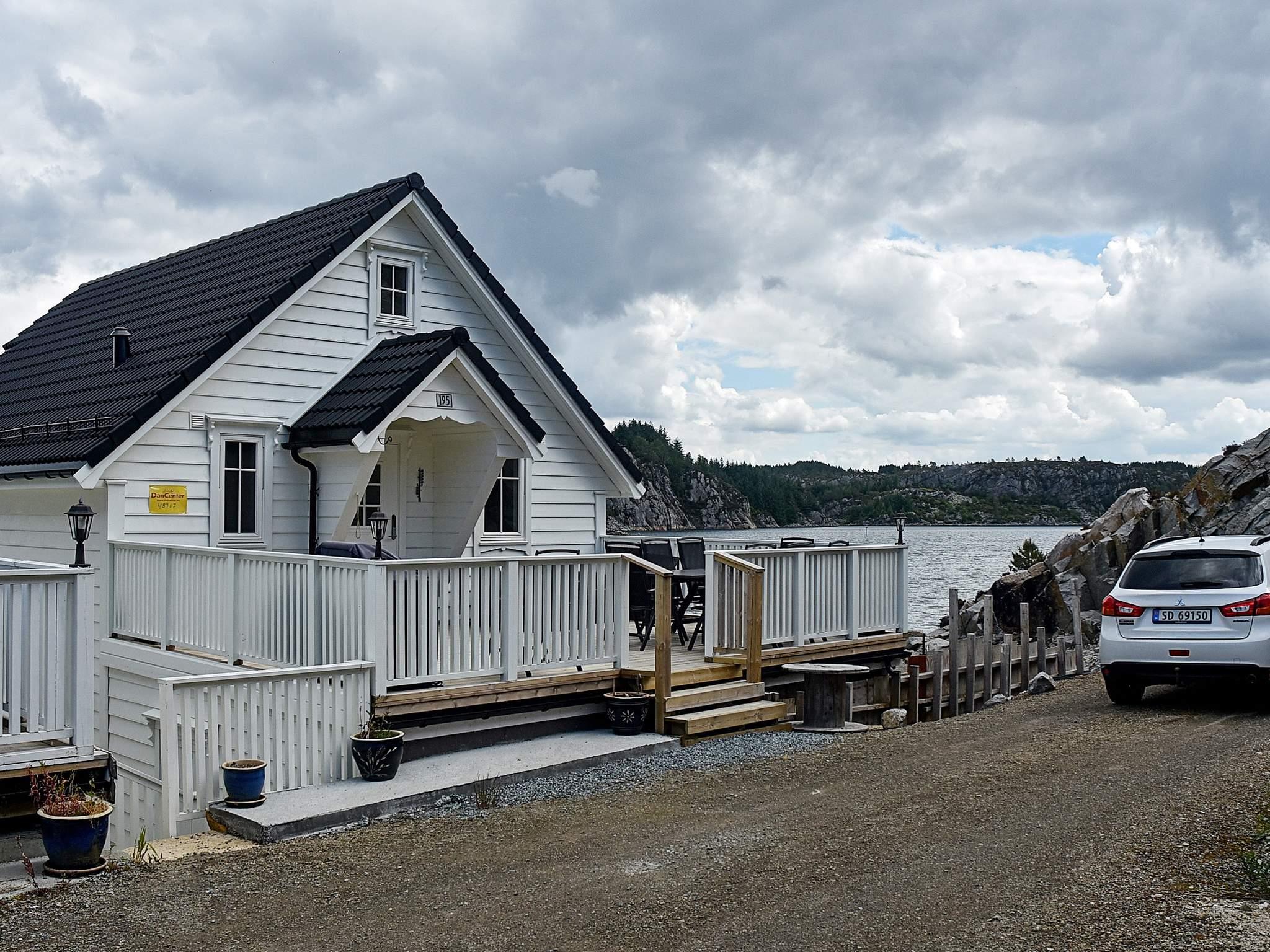 Zur technischen Ausstattung des Hauses gehören auch WLAN (via Altibox/Glasfaser) und einige deutsche TV-Sender im TV. Angenehme Fußbodenerwärmung in den meisten Zimmern des Hauses. In der unteren Etage ist die Einrichtung rustikal gemütlich gestaltet, mit großer Schiebetür zur 41 m² großen Holzterrasse davor mit herrlichem Ausblick. Dort stehen 2 Tische mit Bänken bereit. An der anderen Seite des Hauses gibt es zudem eine 35 m² große Terrassenfläche mit Sitzgelegenheiten. Darunter befindet sich ein 25 m² großer, abschließbarer Stauraum für Angelzeug, mit Gefriertruhe und Filetierbank mit Licht/Wasser.