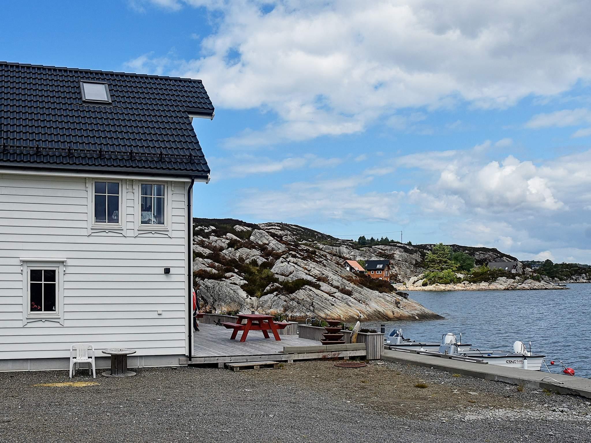 Sogenanntes Uferhaus (rorbu) in attraktiver, geschützter Südostlage. Bootsliegeplatz direkt vor dem Haus und kurze Anfahrt zu guten Angelgründen, daher ideal für Familien die gerne angeln!