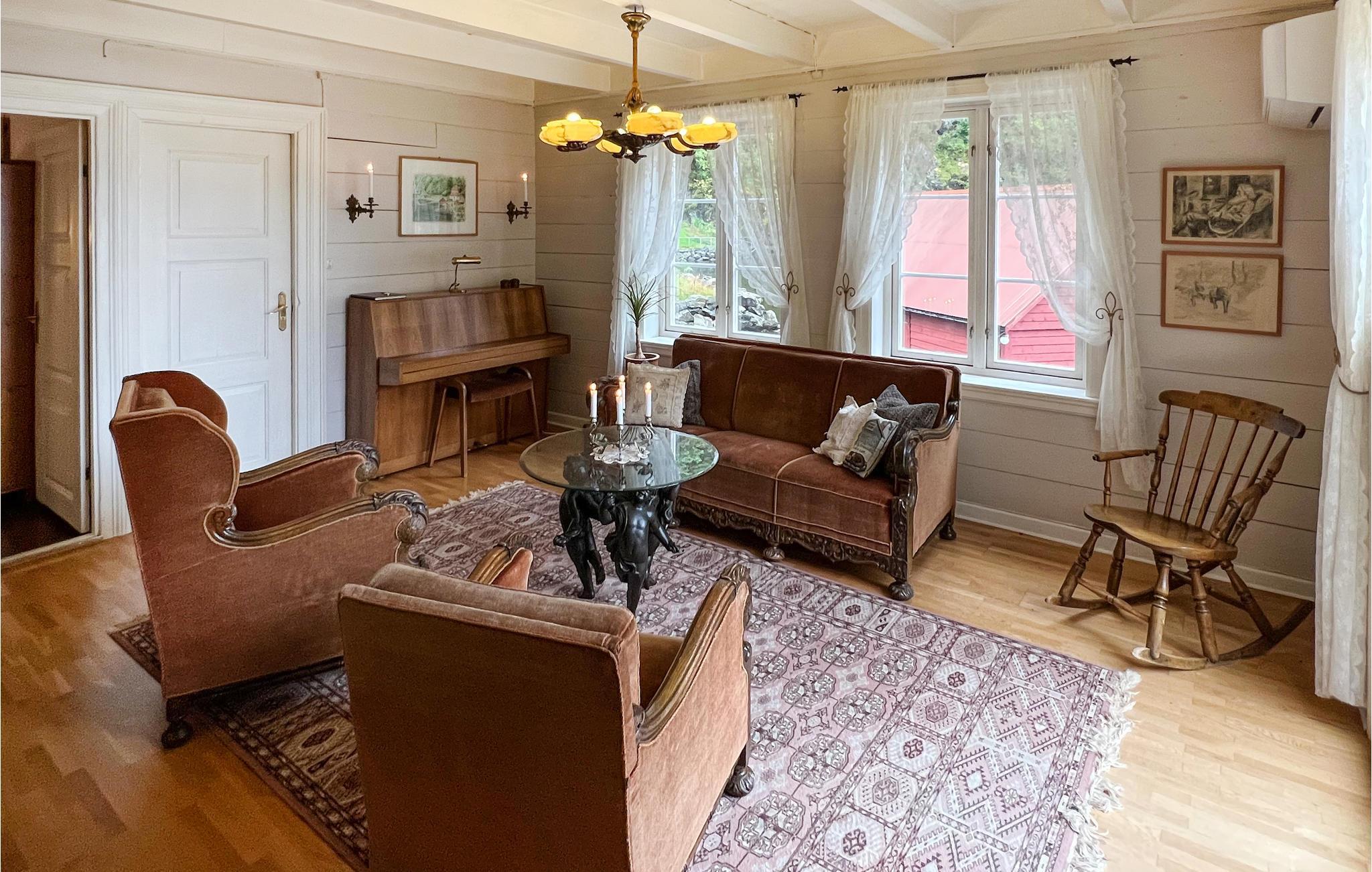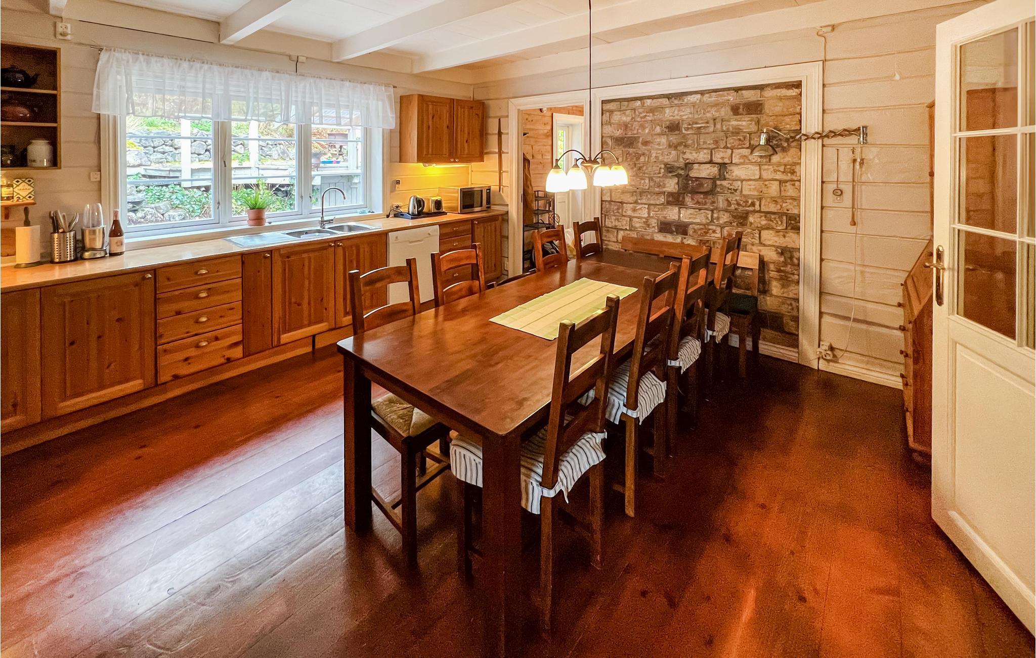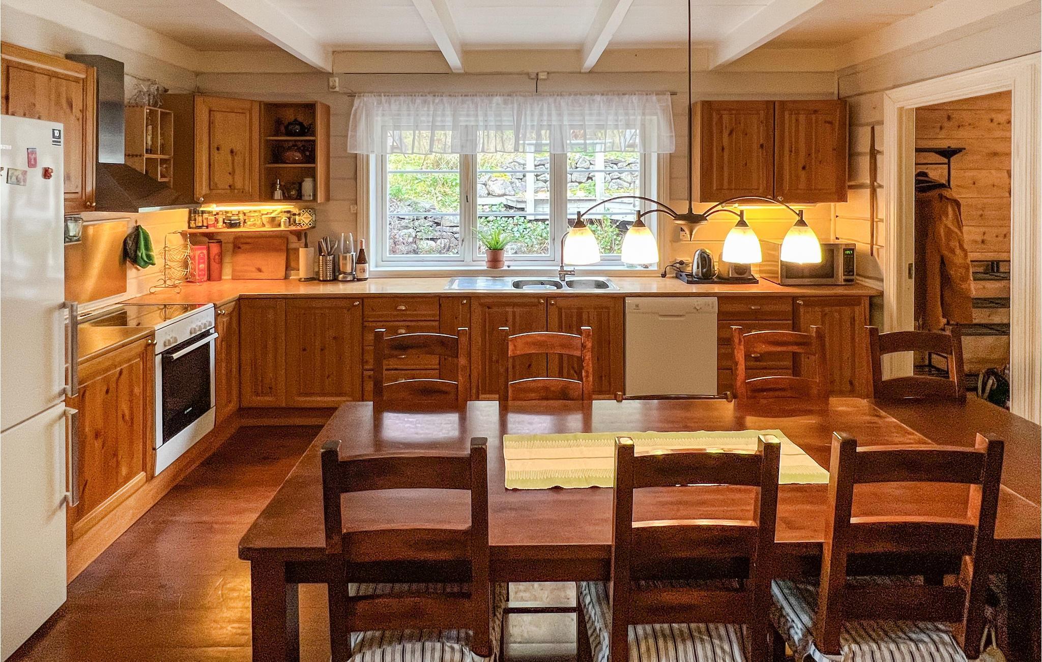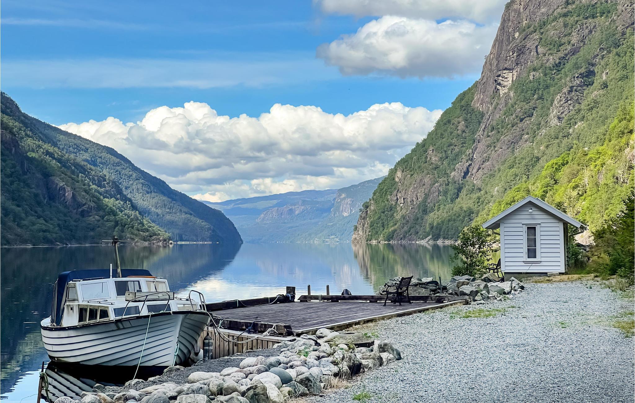 Brauchen Sie eine schöne Auszeit vom Alltag und möchten gerne inmitten der Natur und direkt am Wasser wohnen? Suchen Sie vielleicht auch gute Angelmöglichkeiten? Dann ist dieses Haus optimal für Ihre große Familie. In einzigartiger Natur, auf einem Grundstück am smaragdgrünen, von majestätischen Bergen umranzten Fjord gelegen, wird die Unterkunft sowohl Naturliebhaber und Erholungssuchende als auch Angler begeistern. Das Haus aus dem Jahr 1750 empfängt Sie mit gutem Komfort und einer gemütlichen Einrichtung im heimeligen, etwas älteren Stil. Die Essküche mit guter Ausstattung lädt zum gemeinsamen Kochen ein. Hier ist genug Platz für die Zauberei großer und kleiner Köche. Bereits am Morgen lädt der stille Fjord Sie dazu ein, von Ihrem eigenen Steg aus ins erfrischende Wasser zu springen. Nachher können Sie sonnige Stunden auf der Terrasse verbringen oder Ihre Angelschnur ins Wasser werfen.
