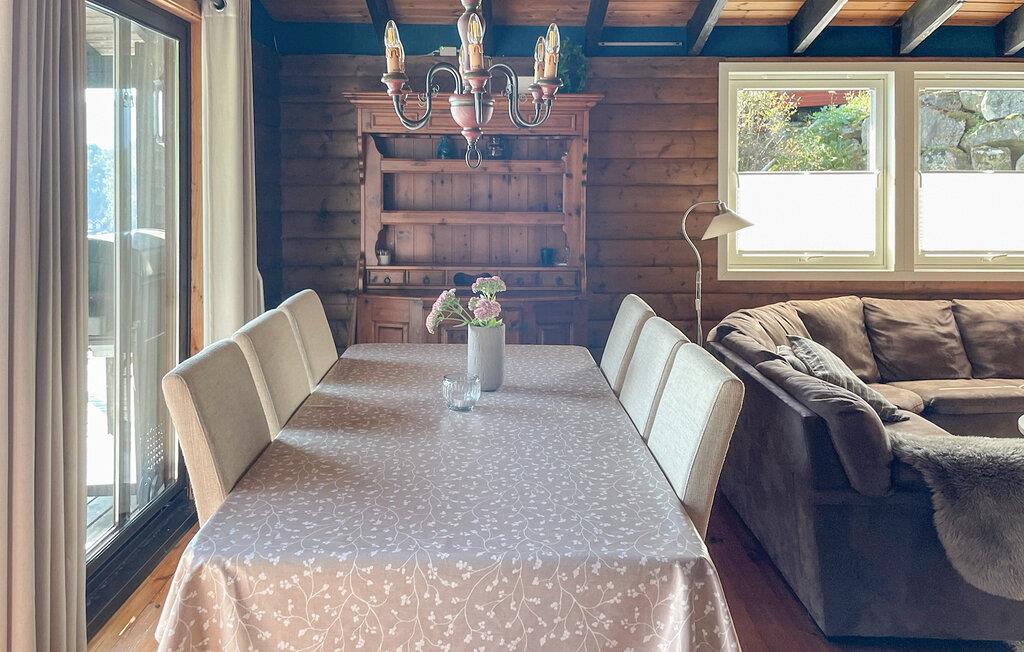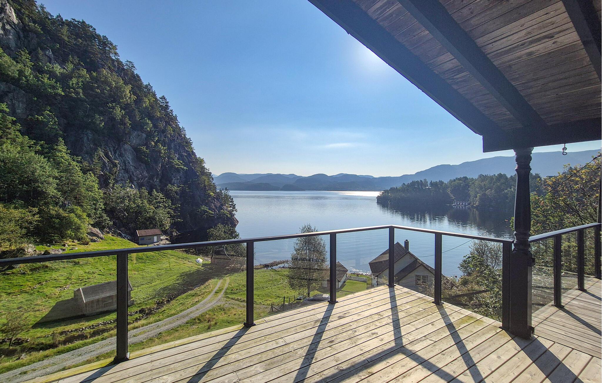 In diesem geräumigen Ferienhaus in Suldal genießen Sie einen Urlaub inmitten der Natur mit herrlichem Blick auf den Fjord. Die gemütliche Einrichtung des Hauses schafft eine warme und einladende Atmosphäre, perfekt für gemeinsame Abende nach einem aktiven Tag. Schwingen Sie in der modernen Küche die Kochlöffel oder freuen sich auf einen kuschligen Filmabend auf dem Sofa.