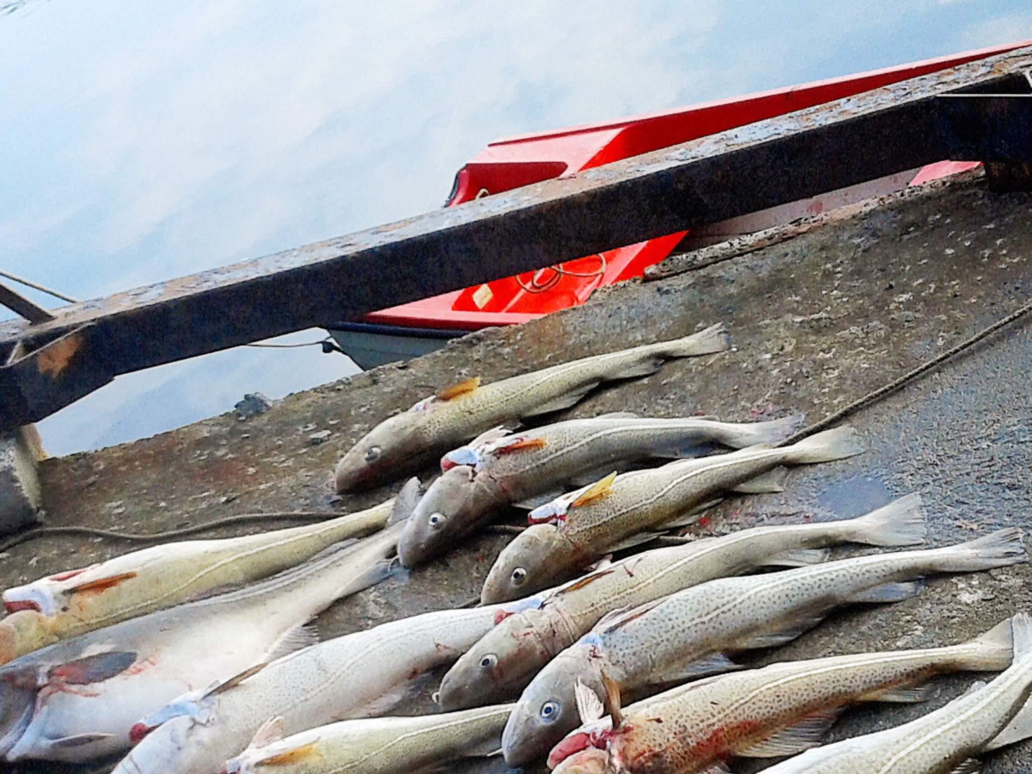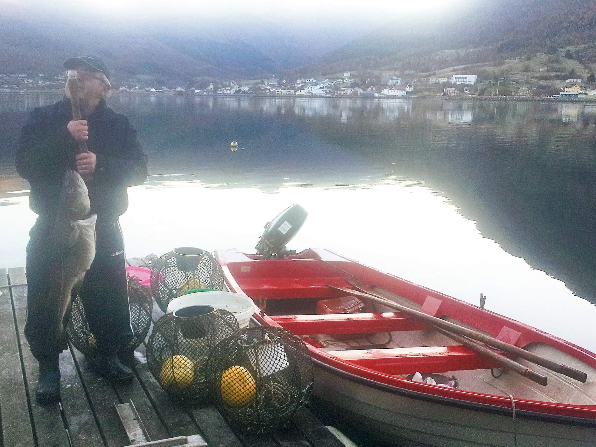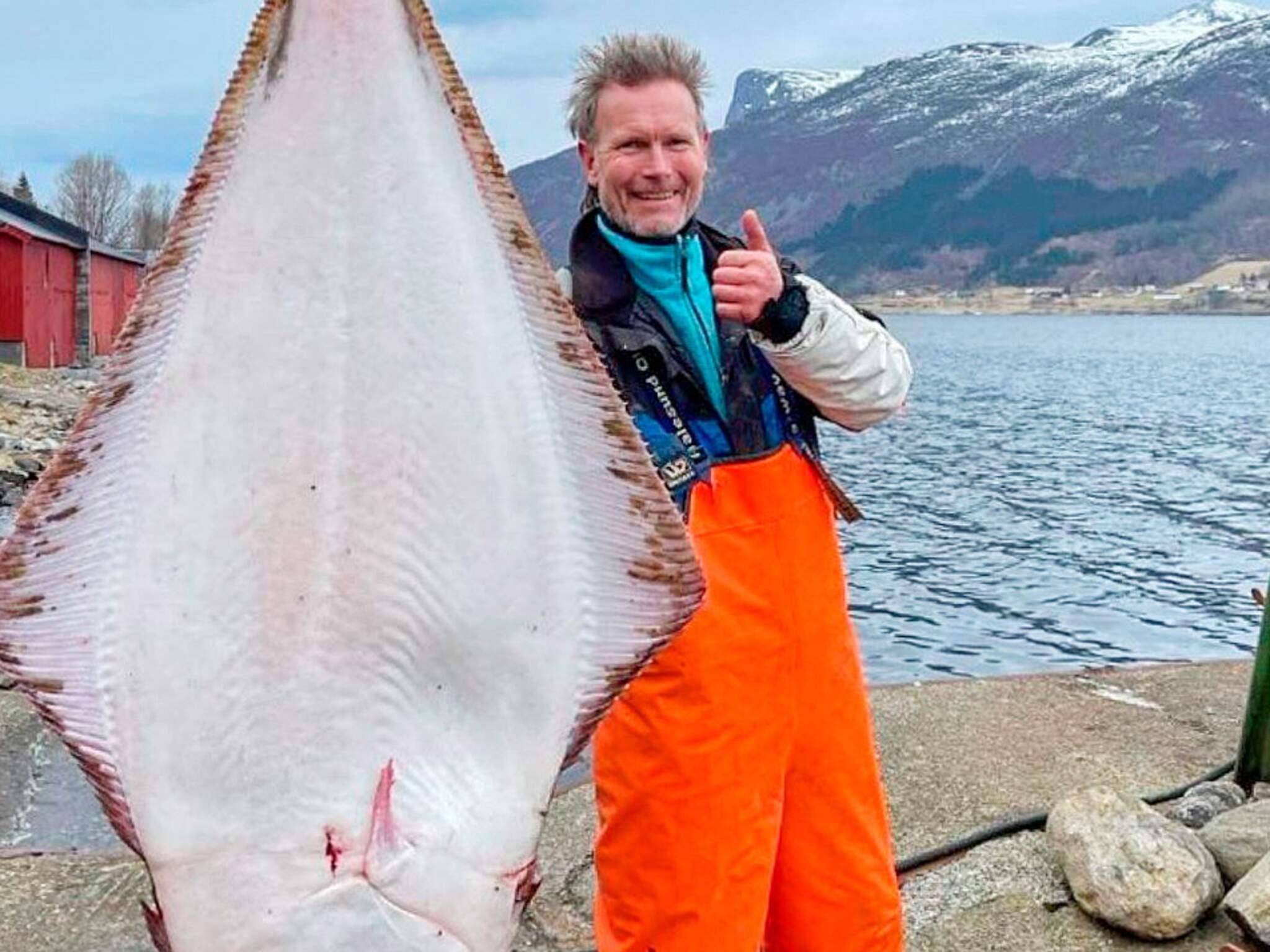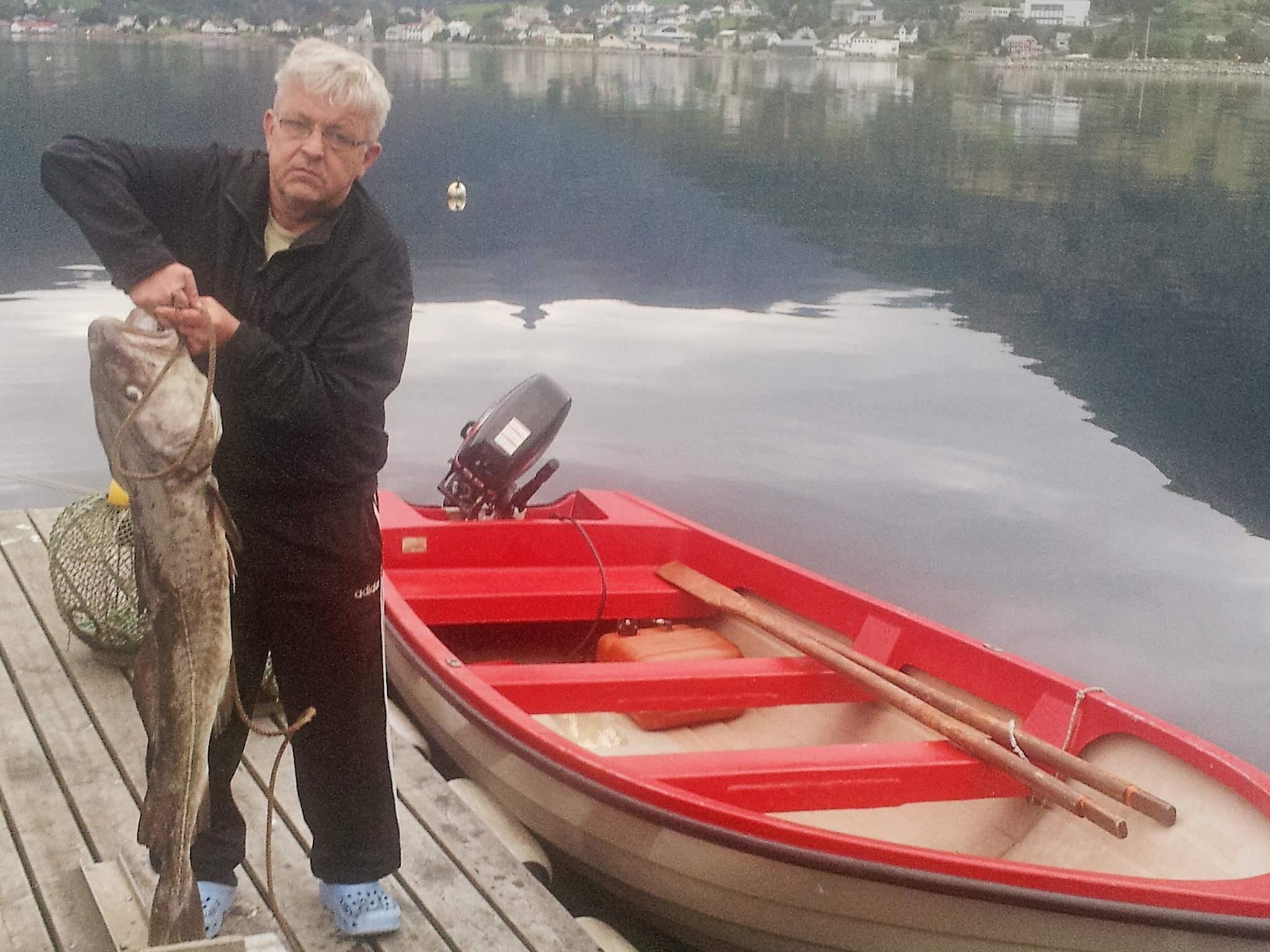 Der dicke Heilbutt (siehe Foto) wurde im Fjord, nur 150 m vom Ferienhaus entfernt geangelt.
