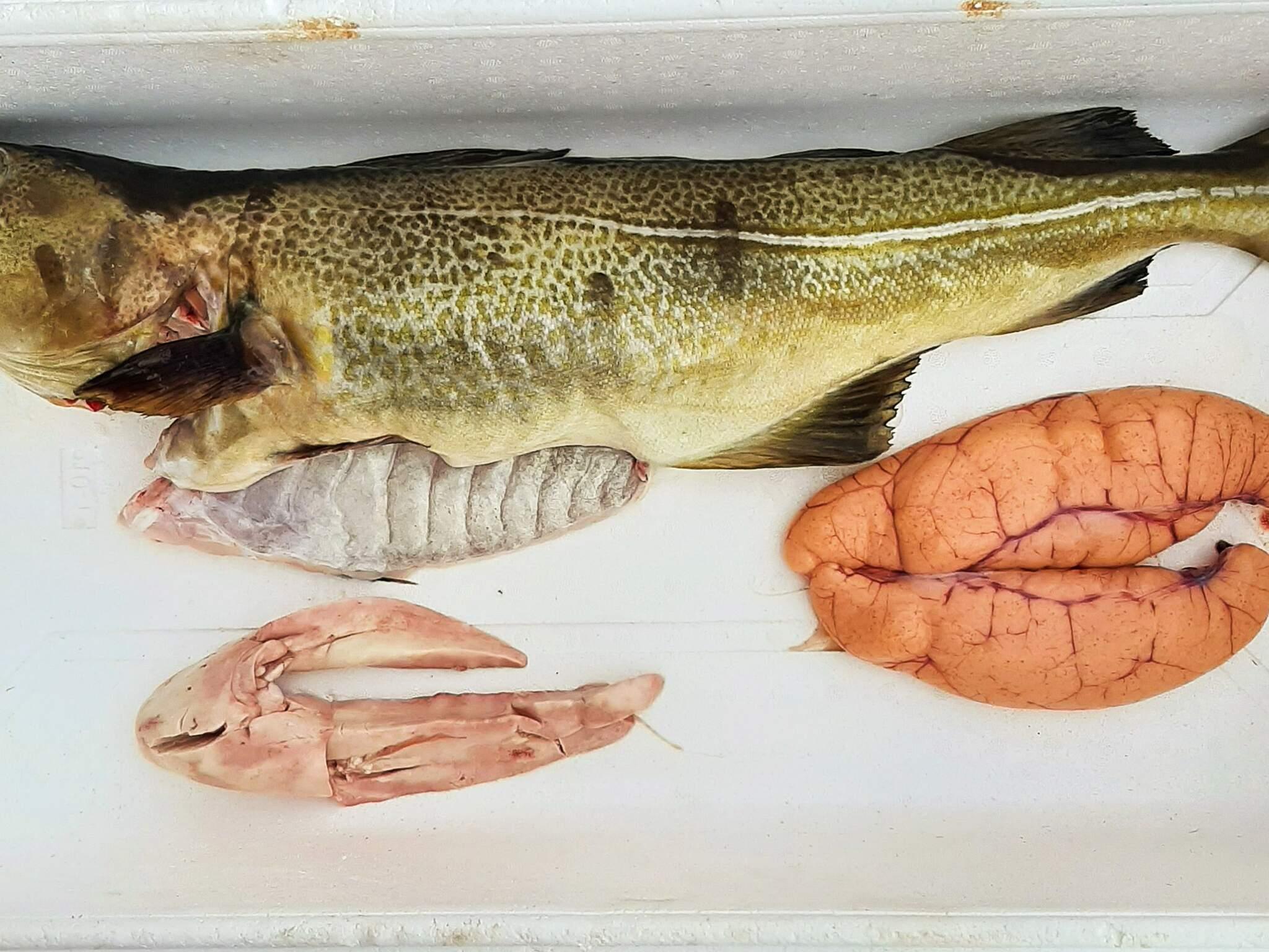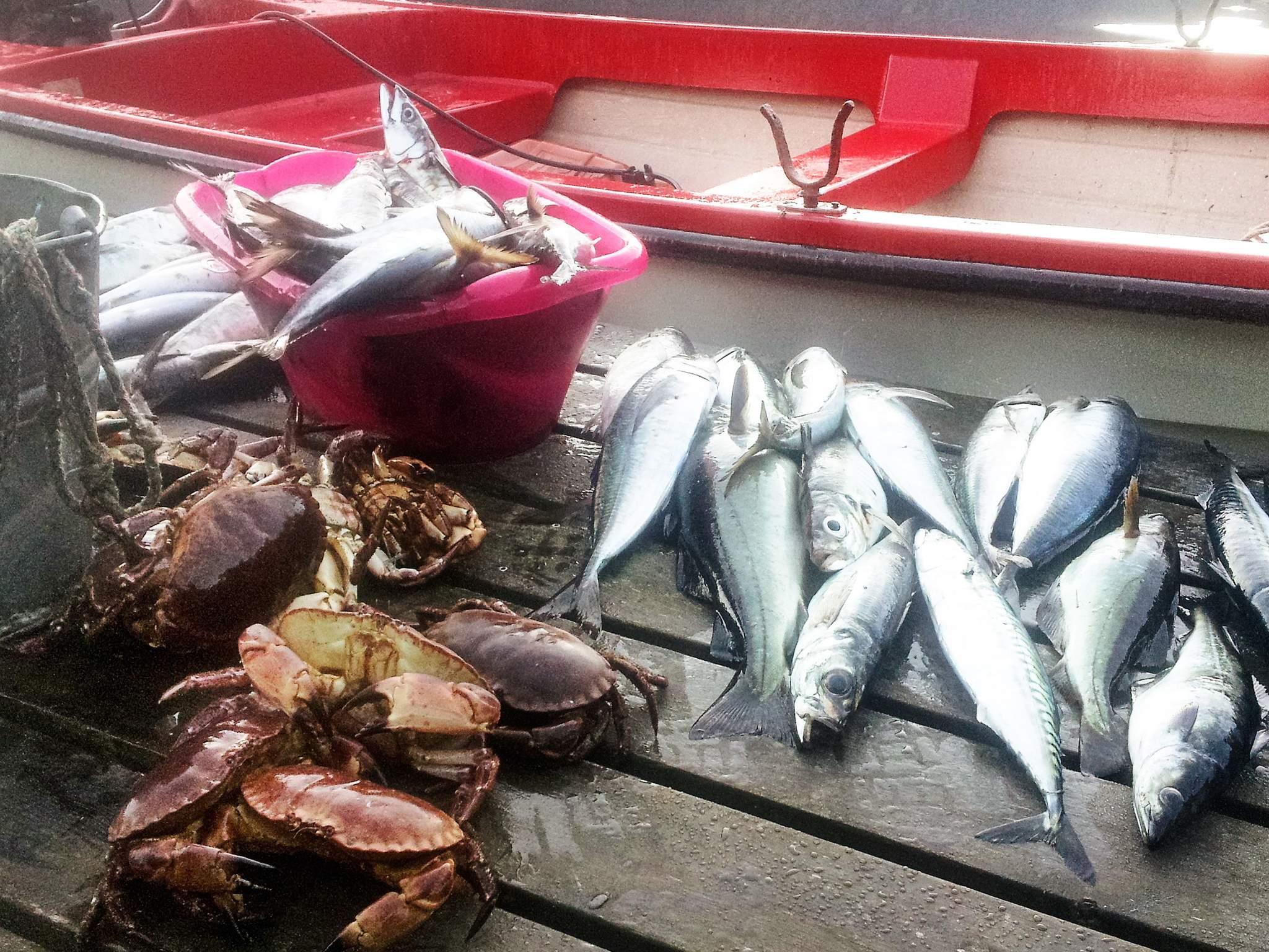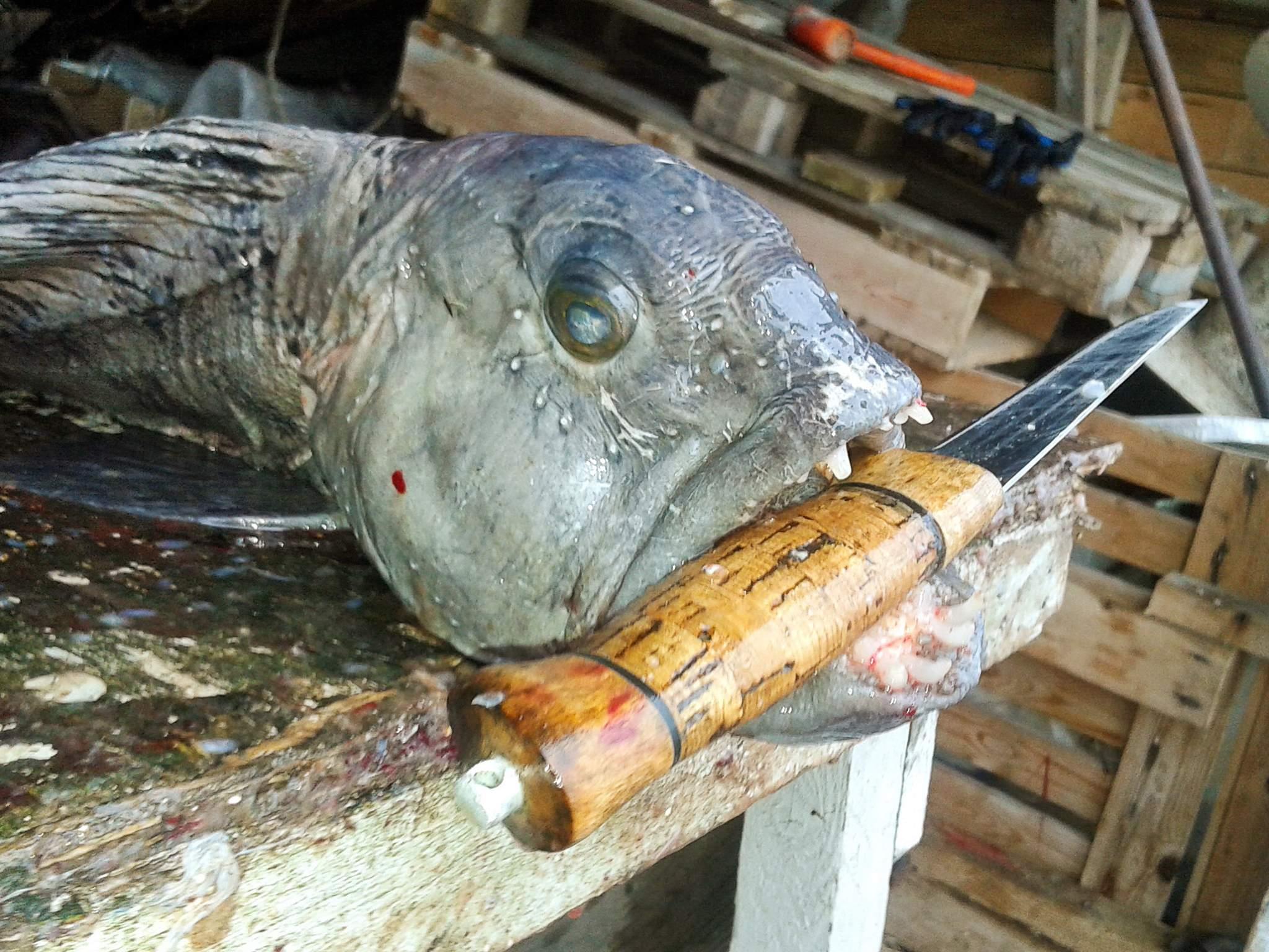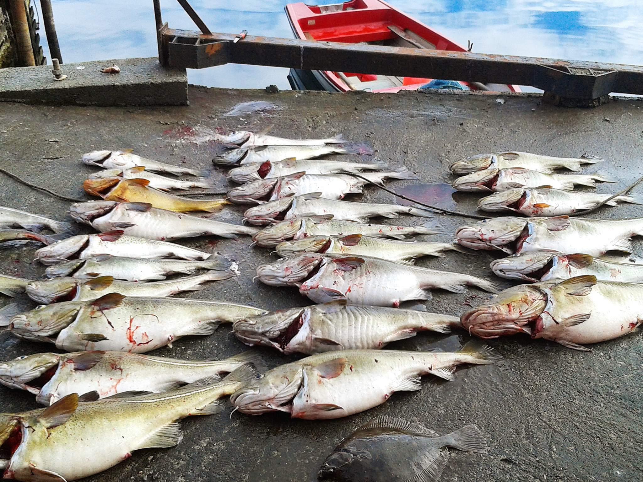 Der dicke Heilbutt (siehe Foto) wurde im Fjord, nur 150 m vom Ferienhaus entfernt geangelt.