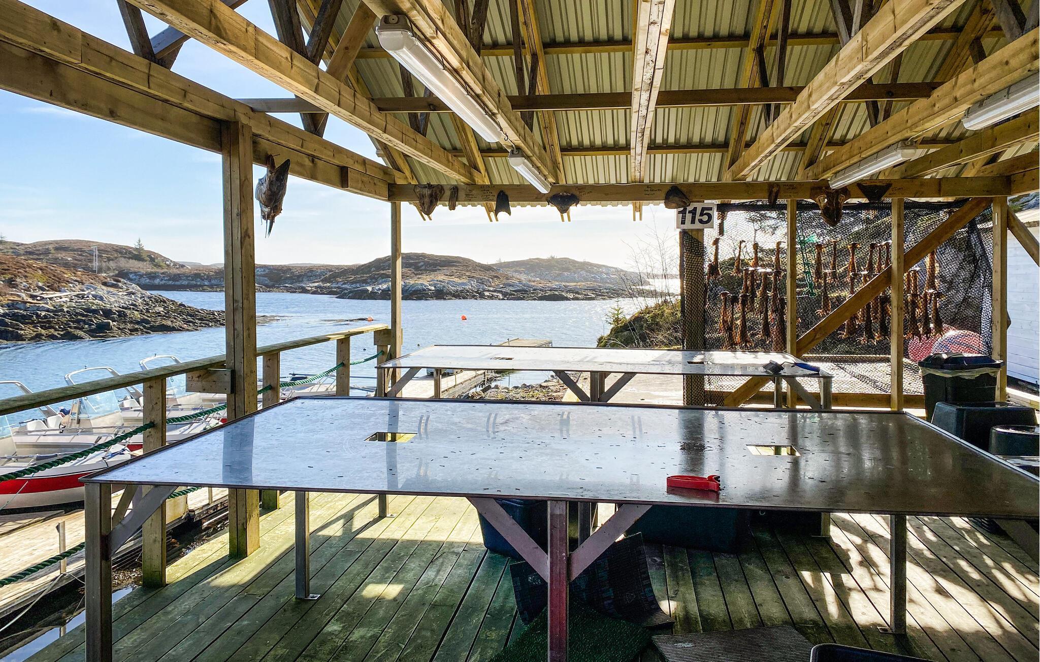 Nehmen Sie ein Sonnenbad auf der Terrasse und widmen Sie sich Ihrer Lieblingslektüre. Lassen Sie den Blick über das Wasser schweifen und genießen Sie lange Sommerabende im Freien, vielleicht mit Leckereien vom Grill. Am separaten, überdachten Filetierbereich mit direktem Zugang zum Schwimmsteg können Sie Ihren Fang reinigen.