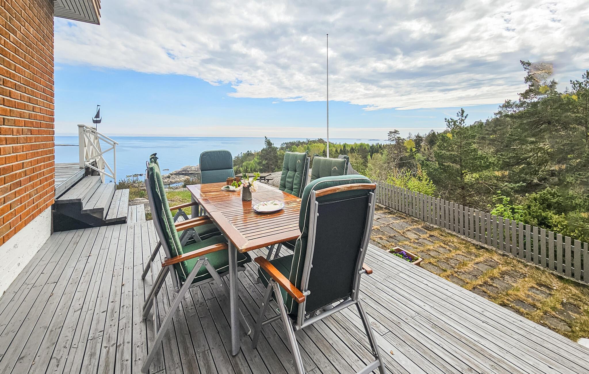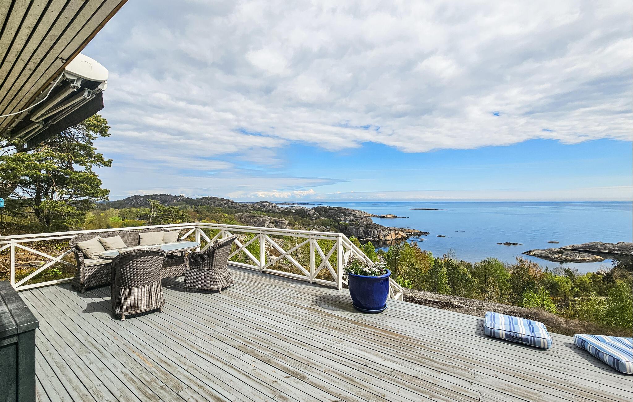 Trauen Sie Ihren Augen, wenn Sie auf die Holzterrasse treten, denn das Meer und die Küste liegt vor Ihren Füßen. Genießen Sie die Sonne und schauen Ihren Kindern zu, wie Sie über die Felsen des Gartens klettern. Grillen Sie am Abend und verweilen noch lange mit einem Glas Wein und dieser tollen Aussicht.