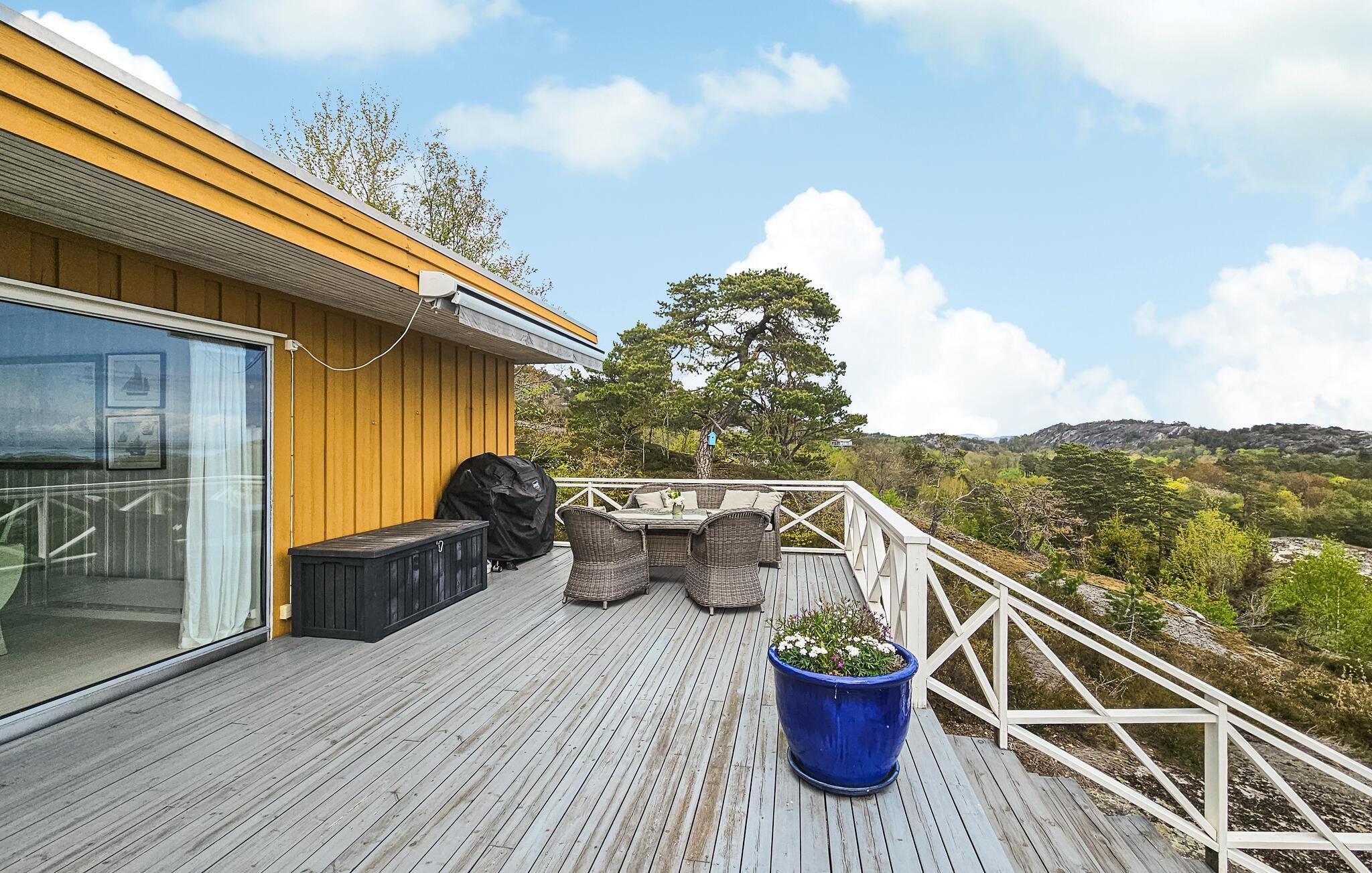 Dieses schöne Haus verspricht Ihnen einen großartigen Urlaub, den Sie so schnell nicht vergessen werden. Kommen Sie an und treten in das Haus ein, das auf einem Felsen, oberhalb der Küste liegt. Die Ausrichtung der Räume zum Wasser hin verspricht Ihnen eine große Fensterfassade und viel Tageslicht. Der geräumige Wohnraum wird dabei der zentrale Treffpunkt für Ihre Familie. Kuscheln Sie sich auf die Sofas, befeuern den Kamin oder speisen am Esstisch mit Meerblick.
