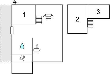 Badezimmer (nr. 1) - WC. Warmes und kaltes Wasser. Dusche