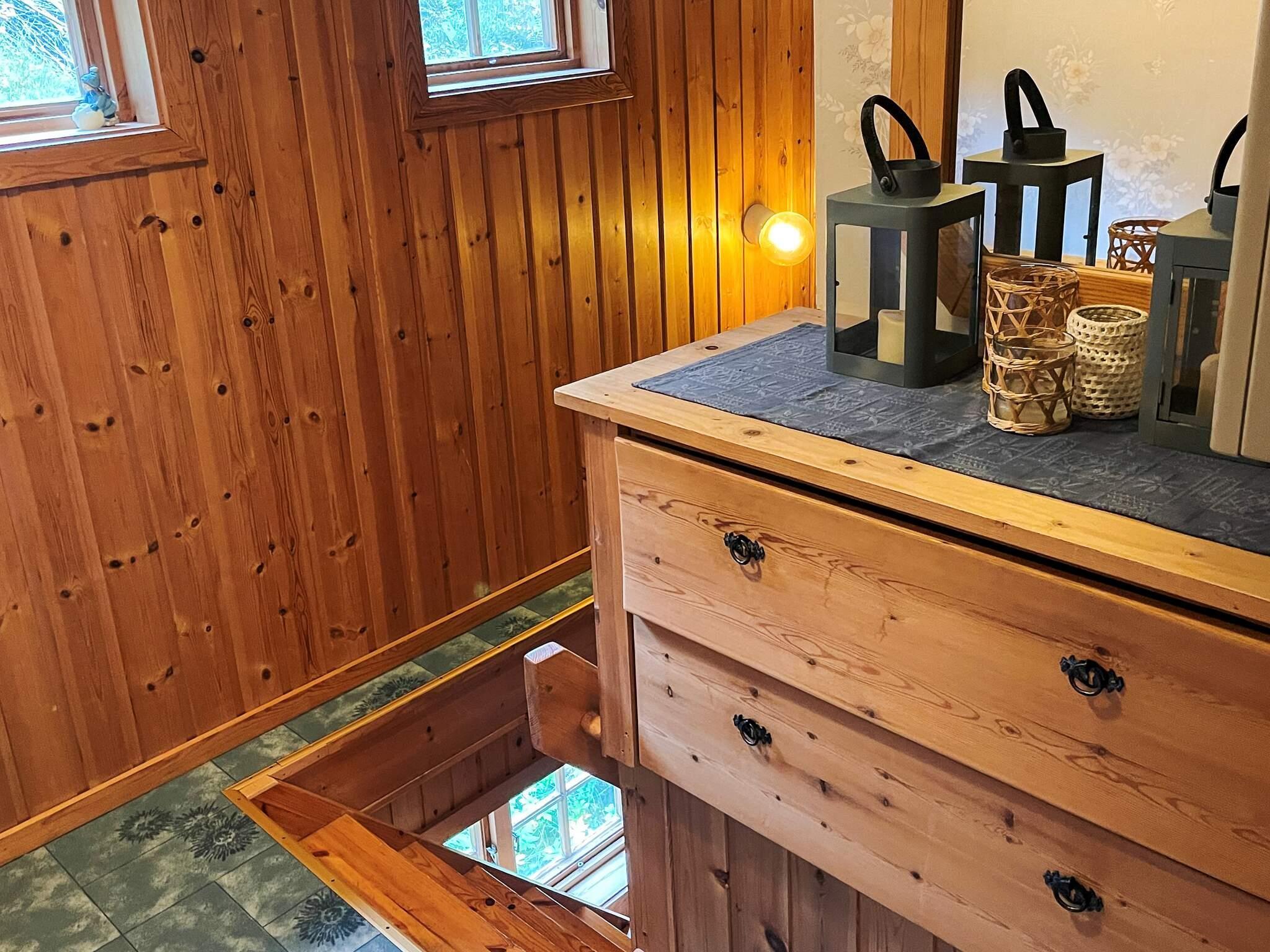 Das Ferienhaus besteht aus zwei Wohneinheiten; erstens der Ferienwohnung 43992 in der mittleren und oberen Etage und mit Badezimmer und Abstellraum im Untergeschoss, zweitens der Ferienwohnung 43991 im Untergeschoss.