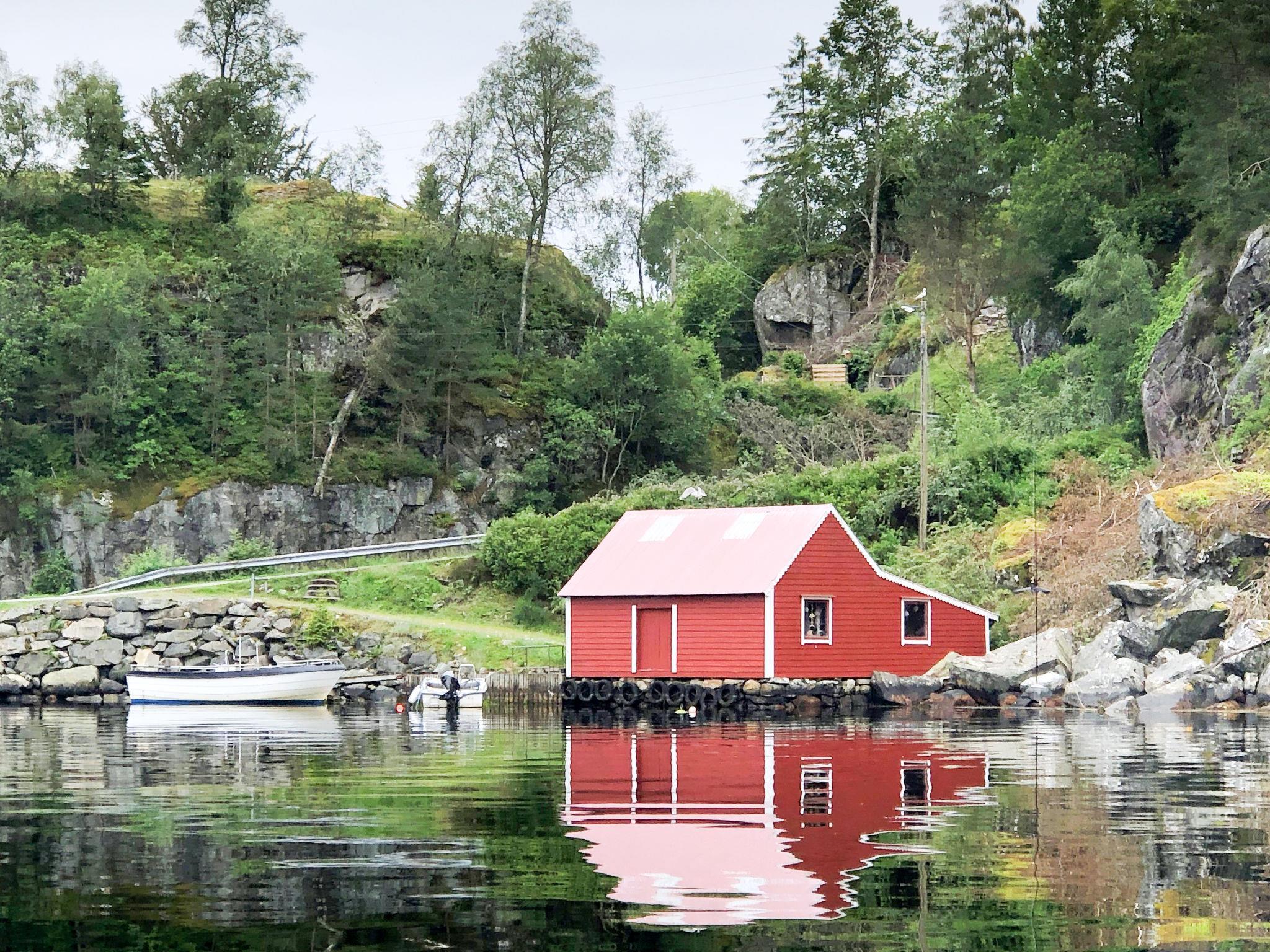 Zertifiziertes Angelhaus "Bjørkeneset". Im Weiler Eversvik, 11 km vom Zentrum von Uggdal, 40 km vom Zentrum von Leirvik, 63 km vom Zentrum von Bergen, 100 m vom Fjord, im Grünen. Badeplatz. Zur Alleinbenutzung: Grundstück mit Bäumen, Wiese. Fischverarbeitungsplatz. Motorboot (auf Bestellung), Parkplatz auf dem Grundstück. Einkaufsgeschäft 11 km, Supermarkt 16 km, Bushaltestelle "Eversvik vest" 200 m, Bahnstation "Bergen" 63 km, Fähre "Bergen" 63 km. Angelmöglichkeit 100 m. Fischverarbeitungstisch mit Fließwasser vorhanden.