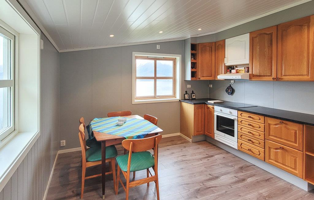 Wohnen Sie in diesem einladenden Bauernhaus auf einem ehemaligen Obsthof in erster Reihe zum Wasser und verbringen Sie einen herrlichen Angelurlaub in der weitläufigen Bergwelt Norwegens. In diesem großflächigen dunkelbraunen Haus mit gemütlichem Hüttenfeeling werden Sie sich zweifellos wohl fühlen. In der großen Essküche können Sie die Wanderung oder die Angeltour planen. Kuscheln Sie sich in die Kissen auf dem Sofa mit Chaiselongue ein und lauschen Sie dem prasselnden Kaminofen. Verwenden Sie Ihre frisch gepflückten Beeren für einen köstlichen Kuchen, den Sie später auf der offenen Terrasse genießen können.