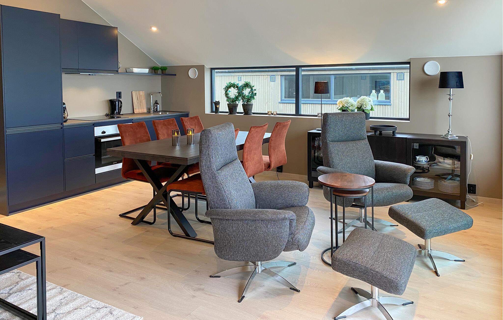 Willkommen in dieser schönen Wohnung, die ihre Gäste mit modern möblierten Räumen und großem Panoramafenster begrüßt, durch das Sie die herrliche Aussicht auf den Fjord optimal genießen können. Lassen Sie schon beim Aufwachen den Blick über die Umgebung schweifen, die Aussicht weckt Vorfreude auf den Tag, der vor Ihnen liegt.