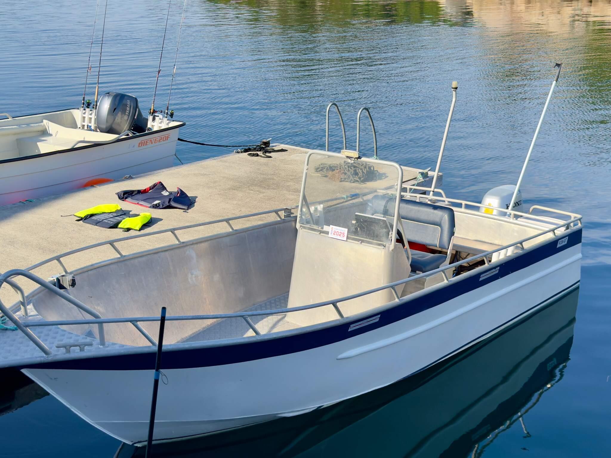 - *ein 19 Fuß Aluminiumboot mit 50 PS Motor, GPS, Kartenplotter und Echolot. Perfekt für raue Bedingungen.