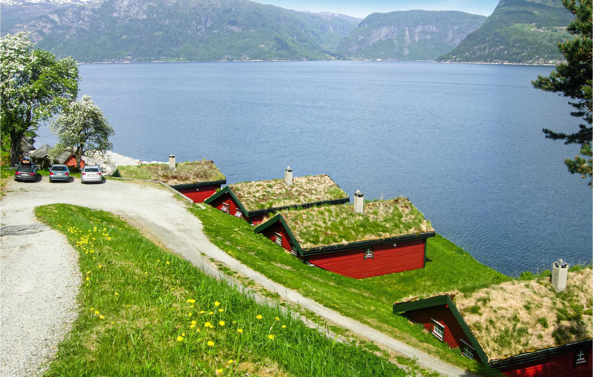 In dieser charmanten Hütte erleben Sie den traditionellen norwegischen Stil und die Grasdächer. Vom Wohnzimmer hat man einen fantastischen Blick auf den Hardangerfjord.