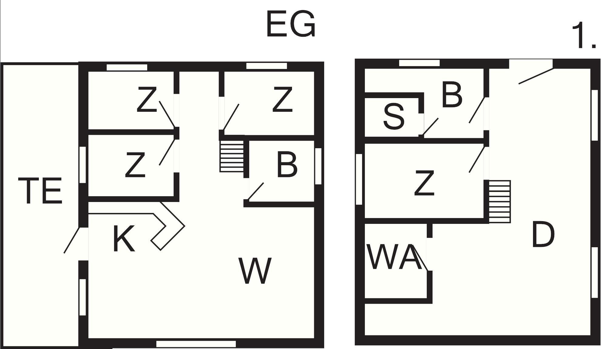 1 Schlafz. (Eingang v. außen): (1DB+1K)