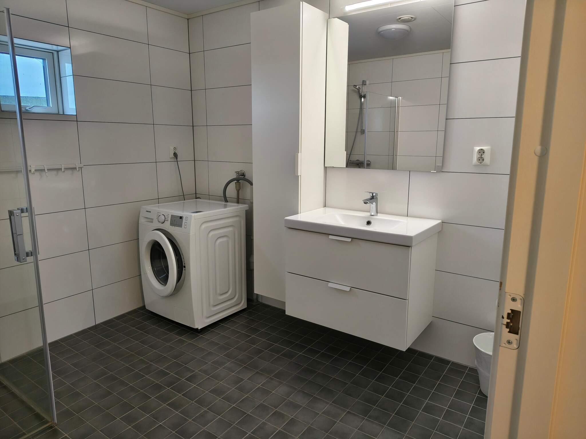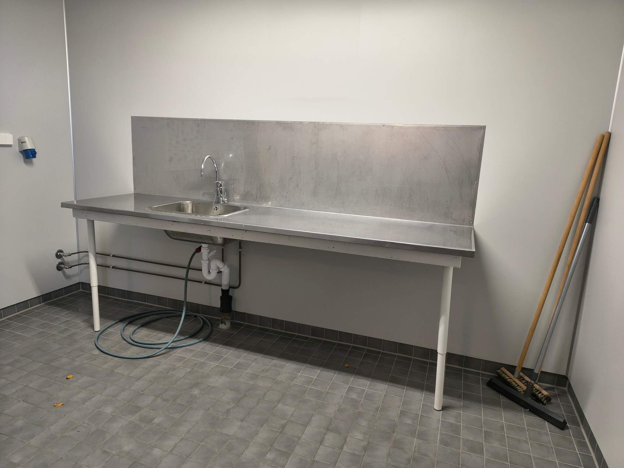 Praktischer Hauswirtschaftsraum unten mit viel Platz, auch zum Filetieren von Fisch sowie Staukapazität für Angelausrüstung, trocknende Kleidung etc.
