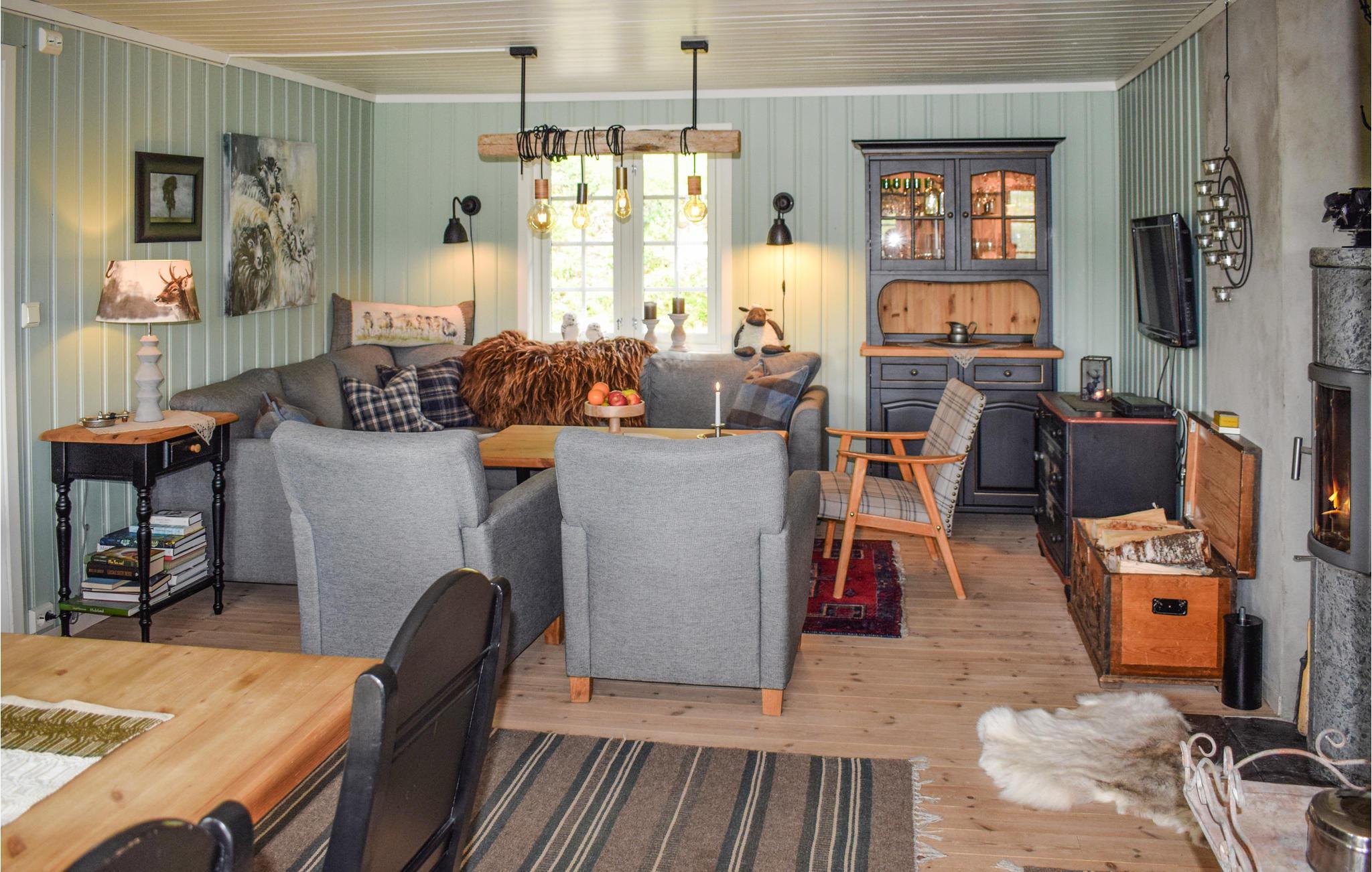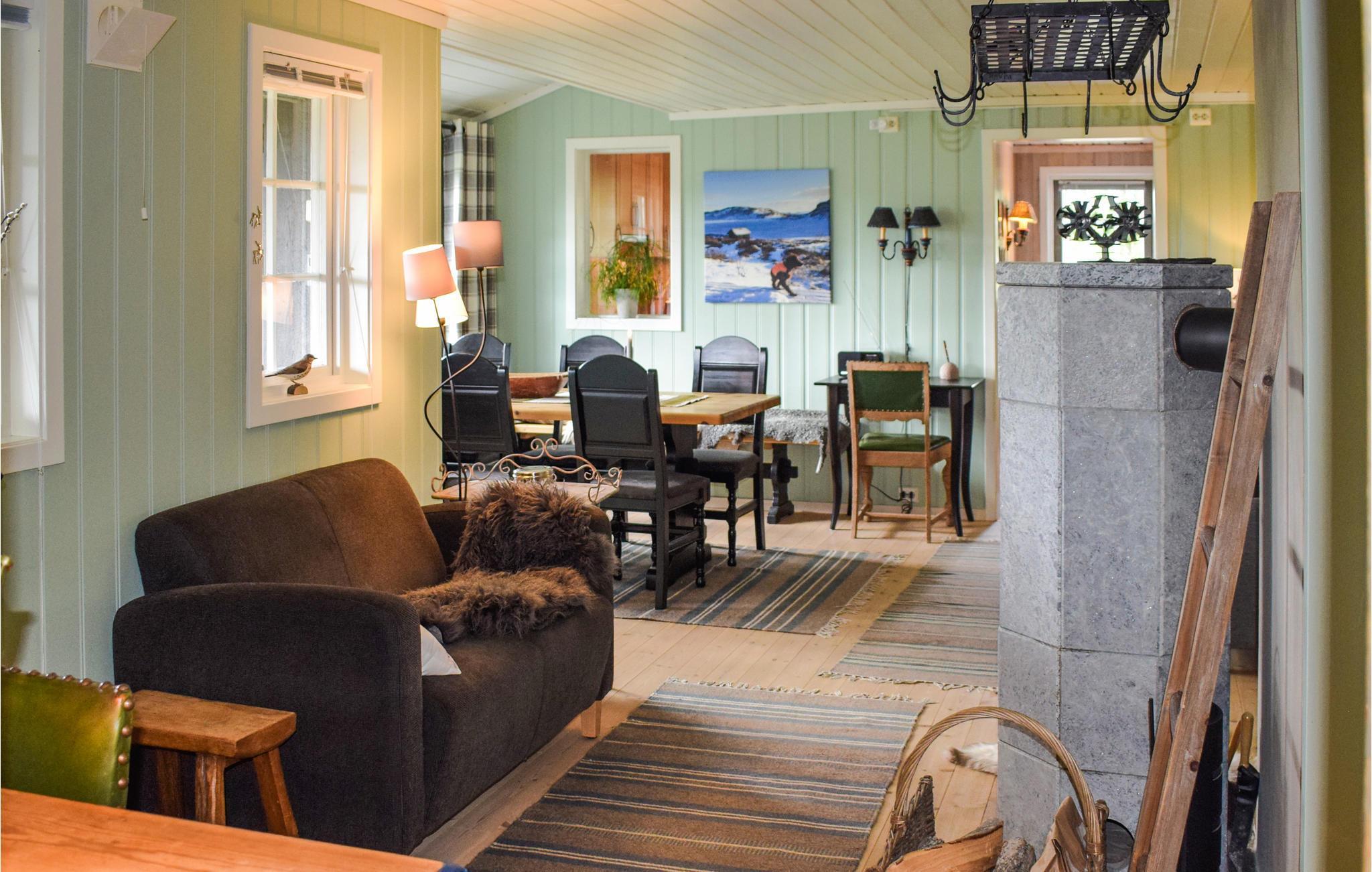 Das einladende Haus empfängt Sie in attraktiver Lage nahe Bademöglichkeiten und wunderbarer Natur und bietet einen wundervollen Gebirgsblick. Genießen Sie in den wohnlich gestalteten Räumen eine erholsame Auszeit mit Ihren Lieben. Die schöne Aussicht können Sie auch bei den gemeinsamen Mahlzeiten und unterhaltsamen Spieleabenden am Esstisch voll auskosten. Nichts ist außerdem schöner als ein gemütlicher Abend am prasselnden Kaminofen in geselliger Runde.