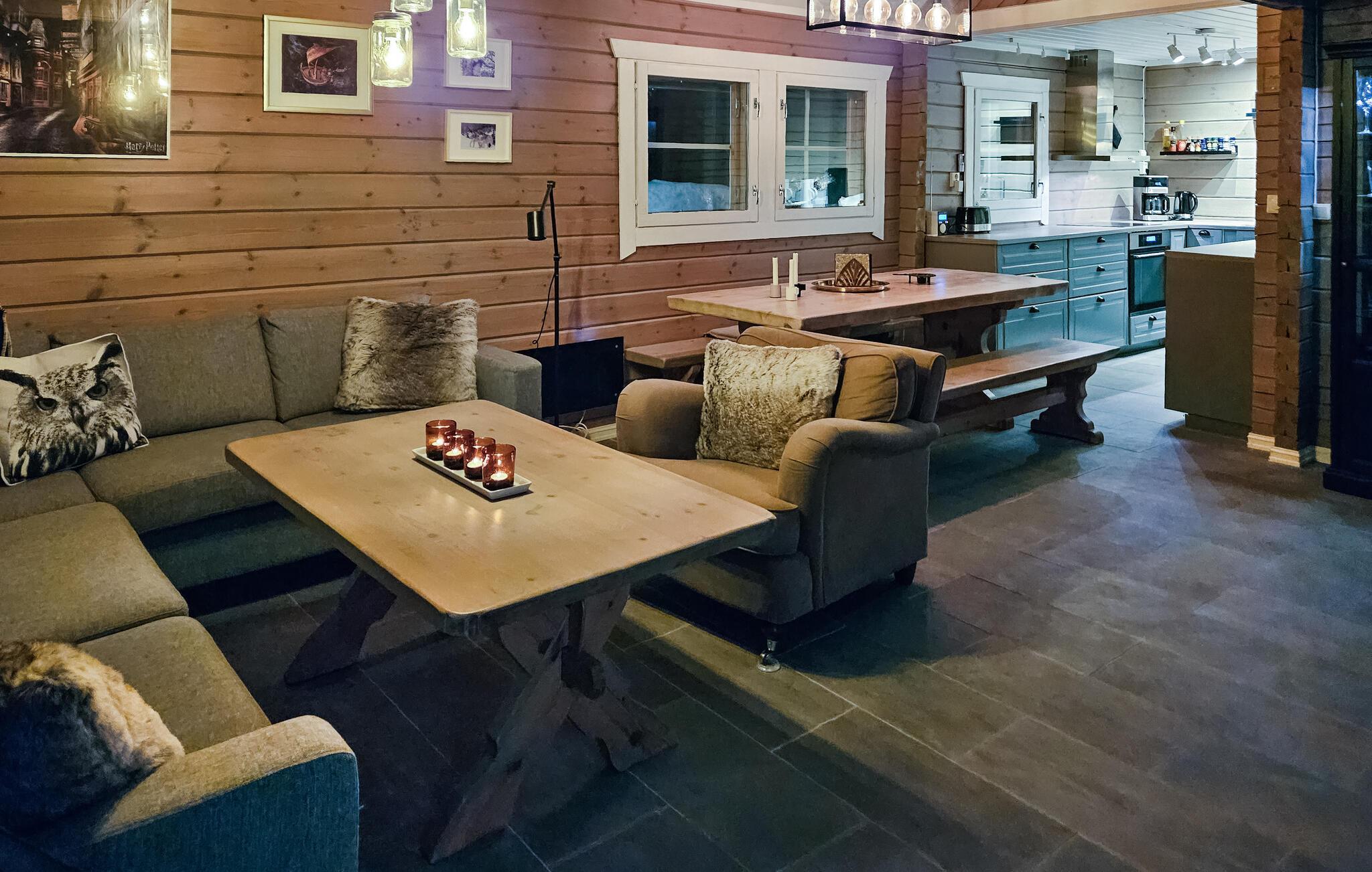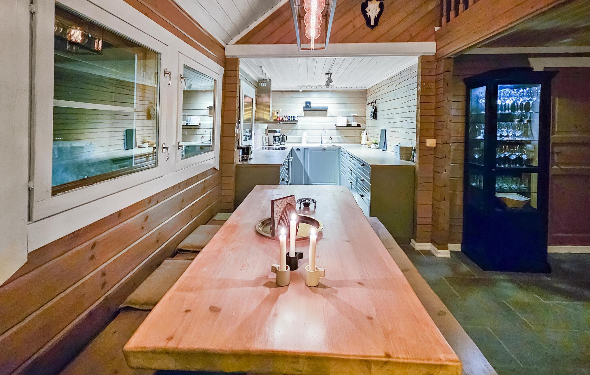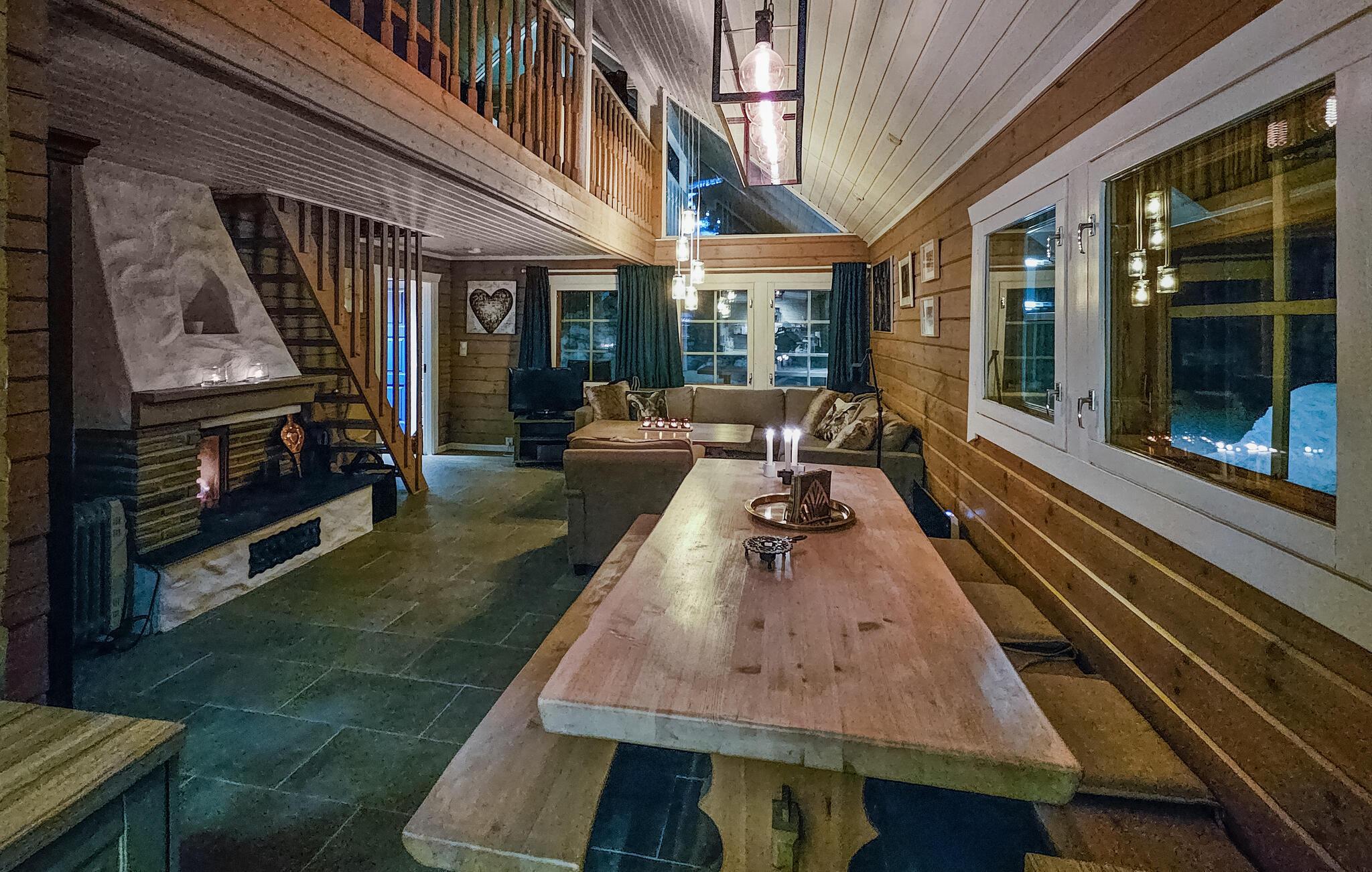 Willkommen in diesem traumhaften Ferienhaus, das Sie eingebettet in die umliegende Berglandschaft begrüßt. Hier ist die Natur zum Greifen nah, und Ihr Ferienhaus erwartet Sie mit einer schönen Kombination aus skandinavischer Einfachheit und uriger Atmosphäre. Genießen Sie hier schon beim Aufwachen den herrlichen Blick auf die weite Natur. Kommen Sie am großen Esstisch zusammen und nutzen Sie die freie Zeit für gemütliches Beisammensein. Fernab von der Hektik des Alltags lädt das knisternde Kaminfeuer zu entspannten Stunden in behaglicher Atmosphäre ein. Ziehen Sie sich mit einem guten Buch in die gemütliche Sofaecke zurück und spielen Sie lustige Spiele gemeinsam mit Ihren Lieben.
