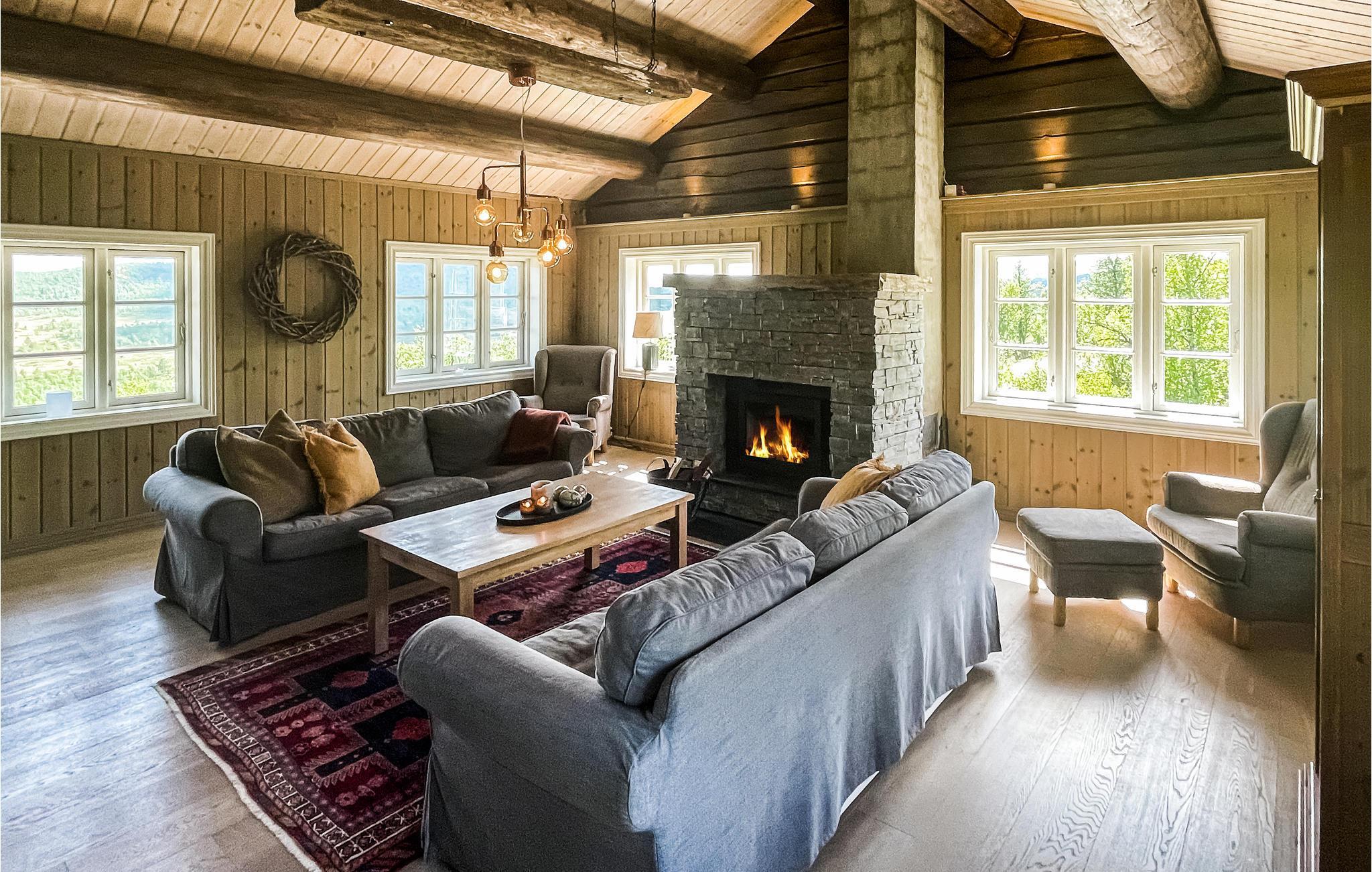 Ihr Ferienhaus in Dagali verbindet modernes Hüttengefühl mit gemütlichem Charme. Hoch gelegen bietet das Haus einen atemberaubenden Panoramablick auf den Pålsbufjord, den Norefjell, Syningan, Smådøldalen, Imingfjell und das Skigebiet Uvdal. Die geräumige Küche ist der ideale Ort, um gemeinsam mit der Familie köstliche Mahlzeiten zuzubereiten, während der helle Wohnbereich mit charmanten Sprossenfenstern zu gemütlichen Spieleabenden einlädt. Entspannen Sie sich bei einer Tasse Kaffee auf einer der Terrassen und lassen Sie die magische Aussicht auf sich wirken. Nach einem aktiven Tag sorgt die Sauna für wohlige Entspannung und hilft Ihnen, den Alltagsstress hinter sich zu lassen.