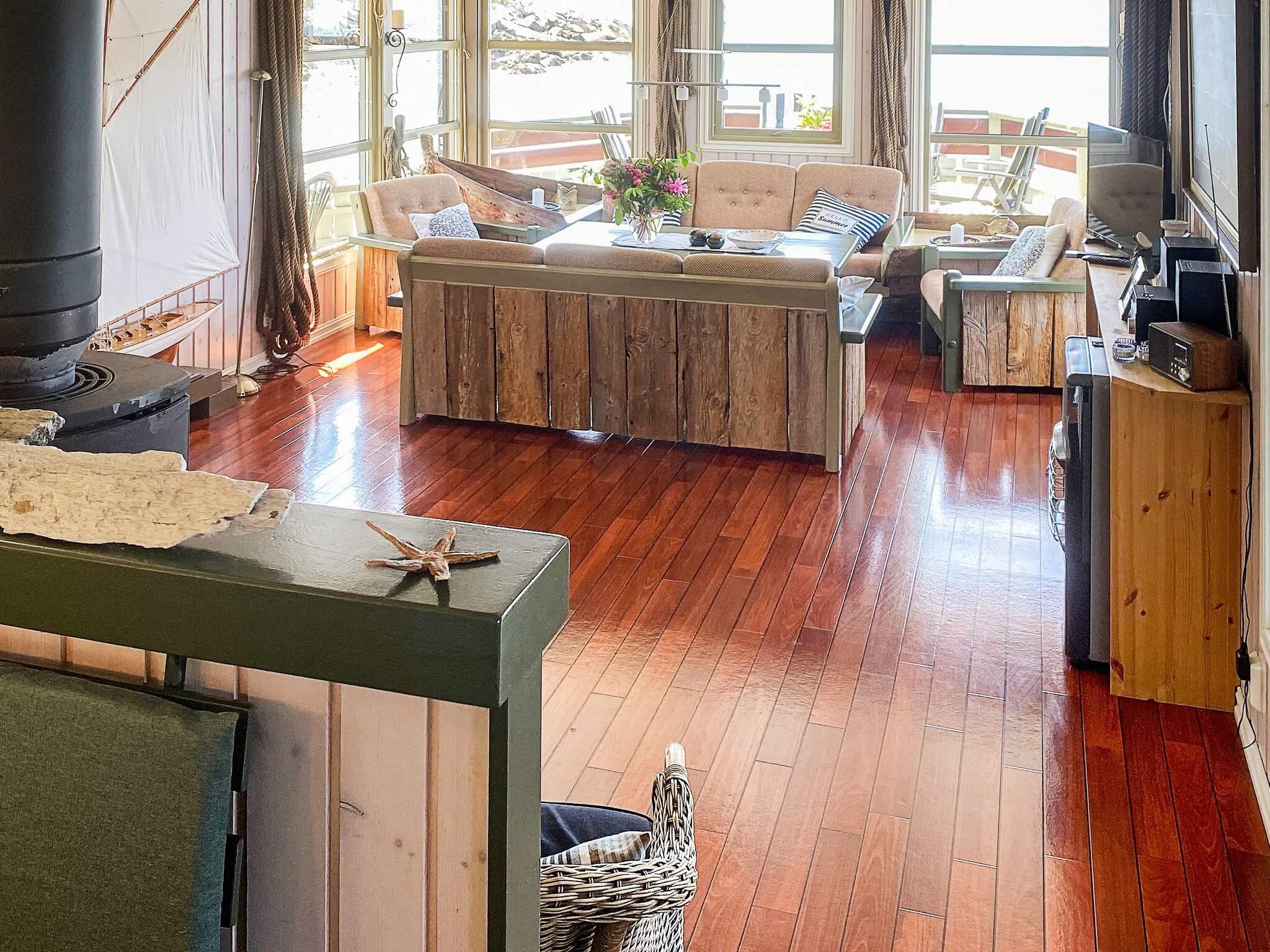 Geschmackvolle Einrichtung und herrlicher Ausblick durch die großen Fenster! Der Kaminofen sorgt an kühleren Tagen für wohlige Wärme. TV m. 20 norw./engl. Sendern zur Auswahl. Nachts erhellen Spotlights das Wasser unter dem Haus. Zugang zu einer Waschmaschine an Land.