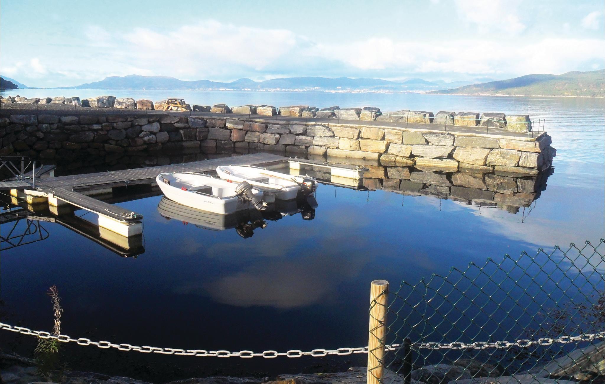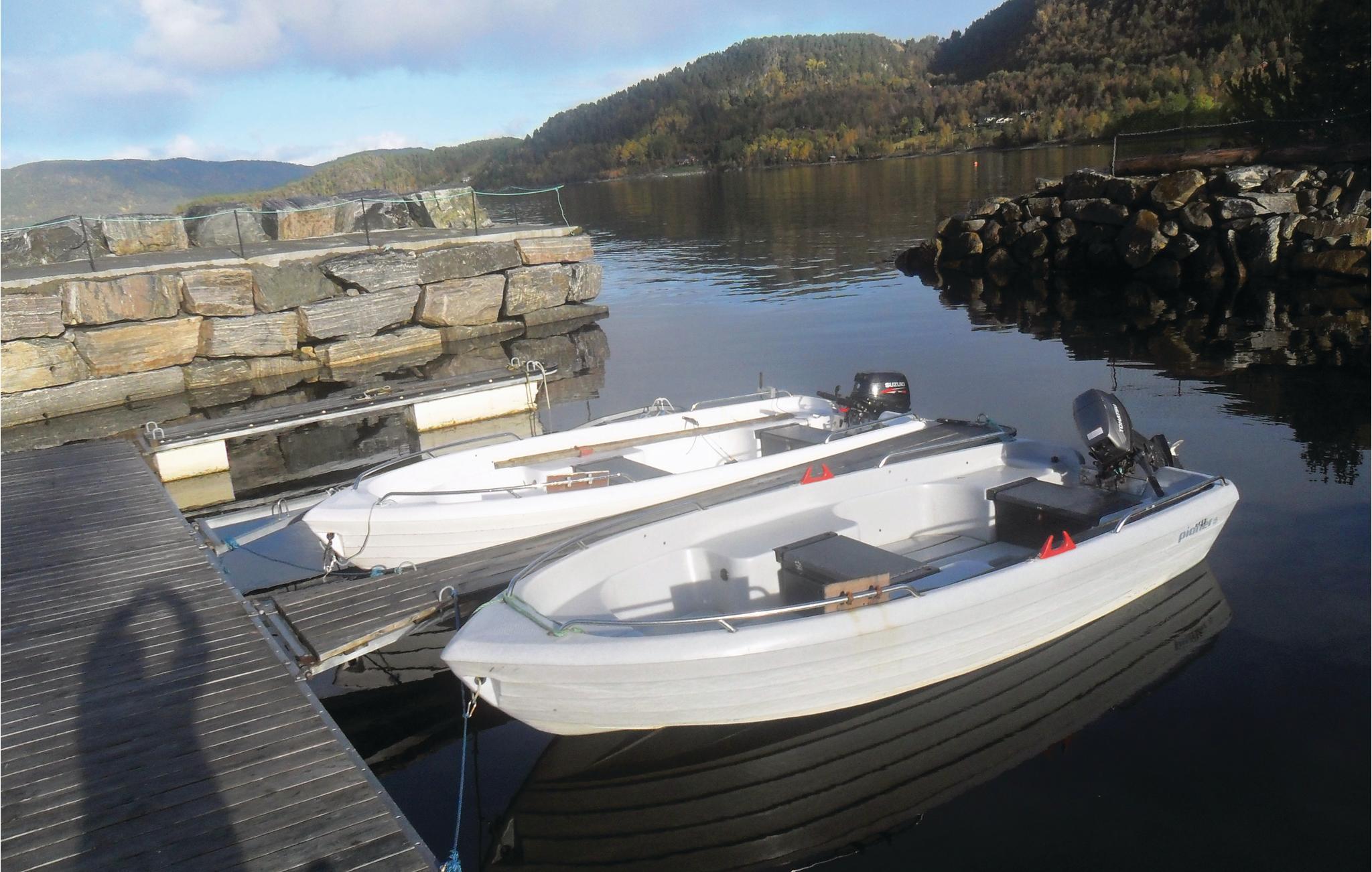 Das Ferienhaus liegt auf einem großen Grundstück mit viel Platz für verschiedene Aktivitäten. An warmen Sommertagen können Sie das Abendessen auf der Terrasse genießen. Das Haus hat einen eigenen Steg, ein Bootshaus und einen Räucherofen für Fisch. Unten am Fjord liegt auch eine kleine, offene Holzhütte, wo Sie den Sonnenuntergang inmitten der Natur genießen können.