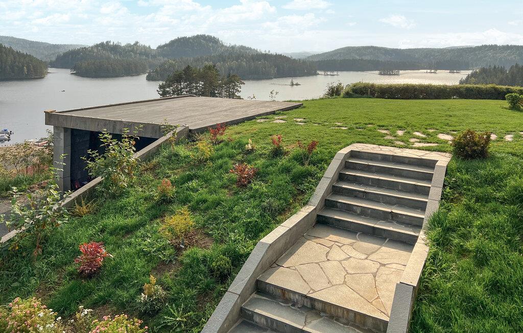 Treten Sie hinaus auf die große Terrasse und lassen Sie den Blick über das Wasser und die bewaldeten Hügel schweifen. Nutzen Sie die einladenden Sitzgelegenheiten zum Entspannen oder Sonnenbaden.