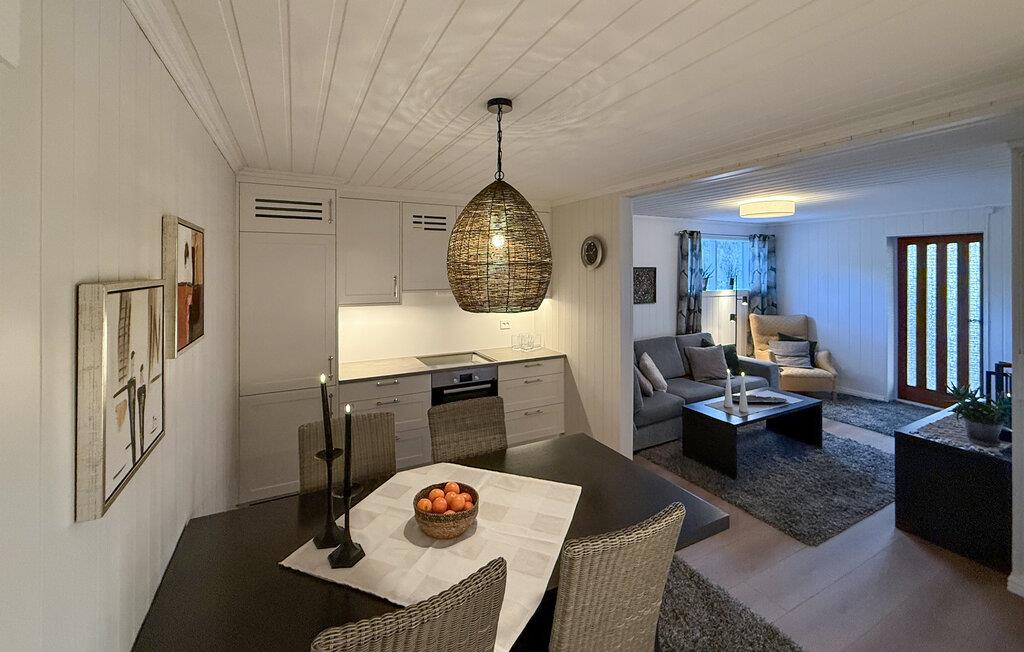 Ihre Ferienwohnung bietet den idealen Rückzugsort für entspannte Tage inmitten der beeindruckenden norwegischen Natur. Genießen Sie hier stilvolles Wohnen in einem modernen Ambiente. Machen Sie es sich im Wohnbereich auf dem bequemen Sofa gemütlich, führen Sie lange Gespräche am Esstisch oder genießen Sie einen ruhigen Filmabend. Beginnen Sie den Tag mit einem üppigen Frühstück, genießen Sie die Ruhe und spüren Sie die Vorfreude auf die Aktivitäten des Tages.