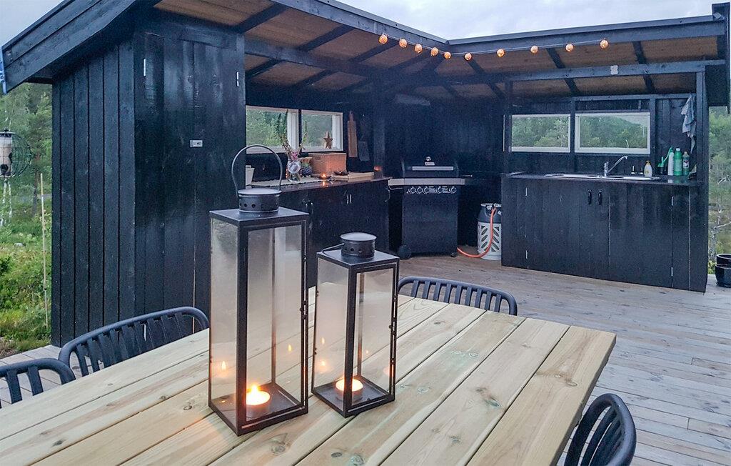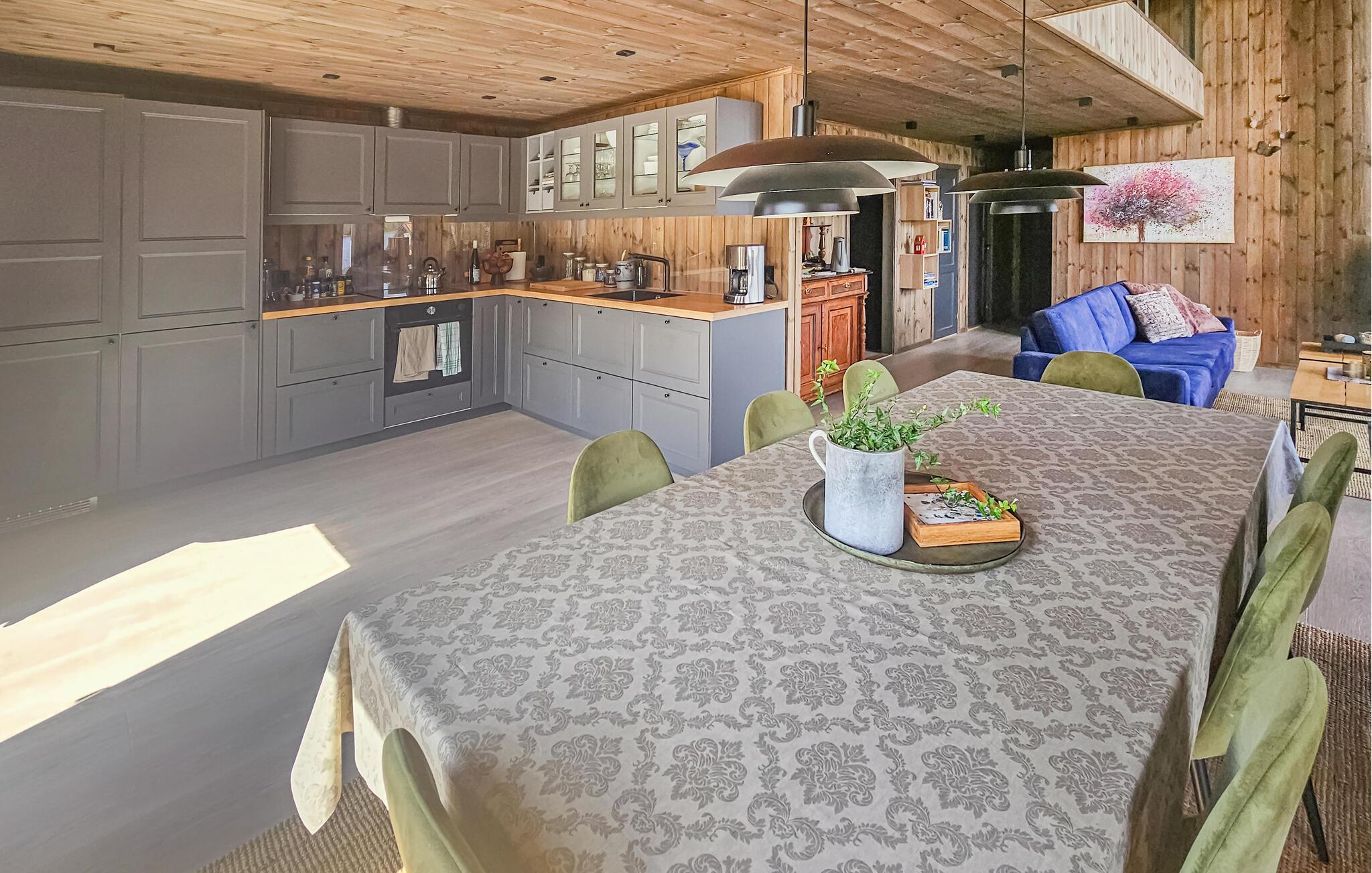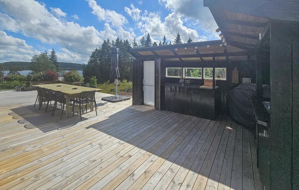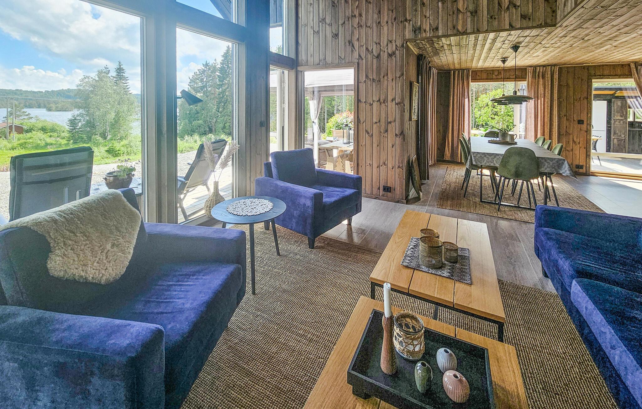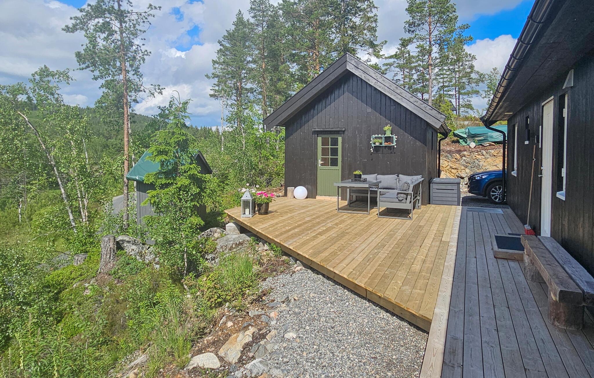 Direkt am malerischen See Sørfjorden gelegen, erwartet Sie dieses traumhafte Ferienhaus in Vegårshei zu einem erholsamen Norwegen-Urlaub. Ihr modernes und stilvolles Haus bietet Ihnen einen schönen Blick auf den See und eine ansprechende Innenausstattung. Beginnen Sie Ihren Tag mit einem Frühstück auf der großzügigen Terrasse, von der aus Sie den weiten Blick über den See und die umliegende Natur genießen können. Die Außenküche mit Grill bietet die Gelegenheit, Ihre Mahlzeiten im Freien zuzubereiten und an der frischen Luft zu genießen. Die gemütlichen Sitzgelegenheiten laden dazu ein, den Tag in Ruhe ausklingen zu lassen.