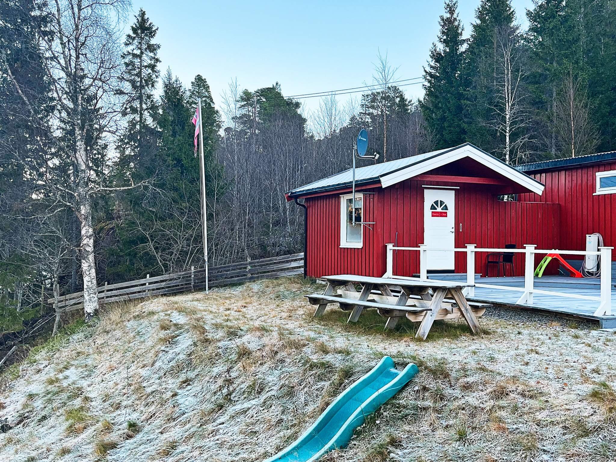 Im Außenbereich findet man eine Terrasse mit Bänken, Tischen und Stühlen, Feuerstelle/Grill und eine praktische Außendusche für Sommertage. Zudem schöner Sitzplatz mit Bänken unten am Wasser, wo Sie wunderschöne Sonnenuntergänge genießen können. Das Haus liegt in einem etablierten Hüttenfeld, das ruhig und familienfreundlich ist. Die Umgebung bietet sowohl im Sommer als auch im Winter tolle Wandergebiete sowie gute Jagd-, Angel- und Badebedingungen.