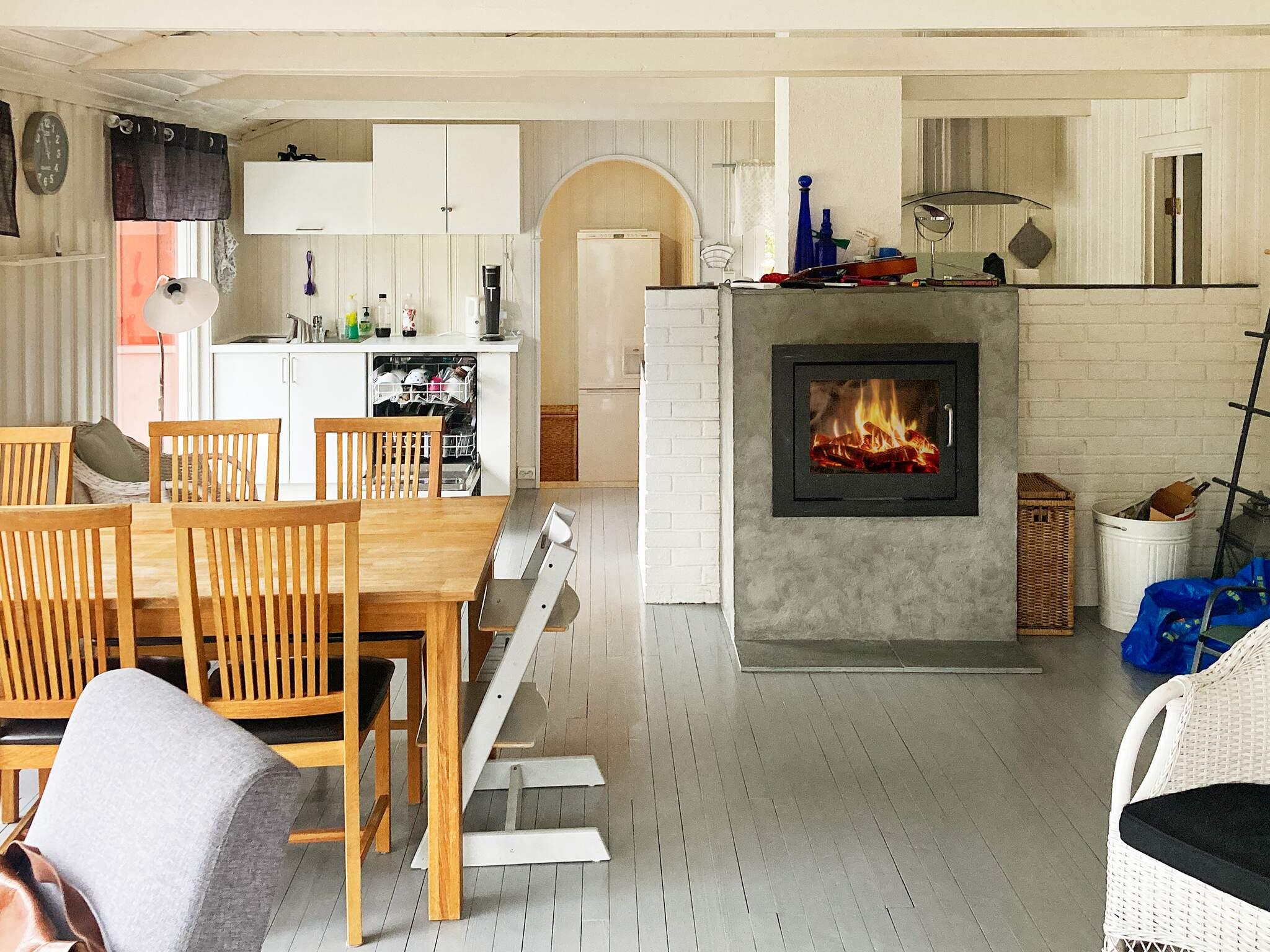 Das hell und wohnlich eingerichtete Ferienhaus hat drei Schlafzimmer mit insgesamt sechs Schlafplätzen. Zudem stehen im separaten Annex drei weitere Betten zur Verfügung. Im Haupthaus voll ausgestattete Küche und Essbereich für neun Personen. Tolle Aussicht zum Wasser durch große Panoramafenster und ein gemütliches Wohnzimmer mit Holzofen für kühlere Tage. Badezimmer mit Waschmaschine.