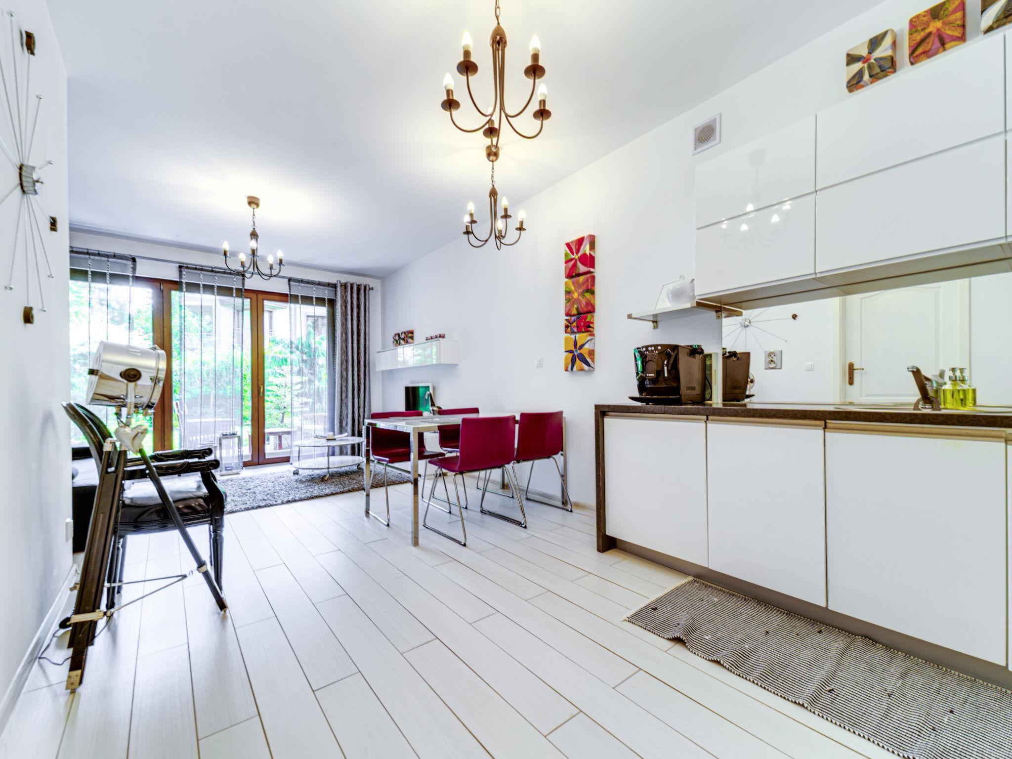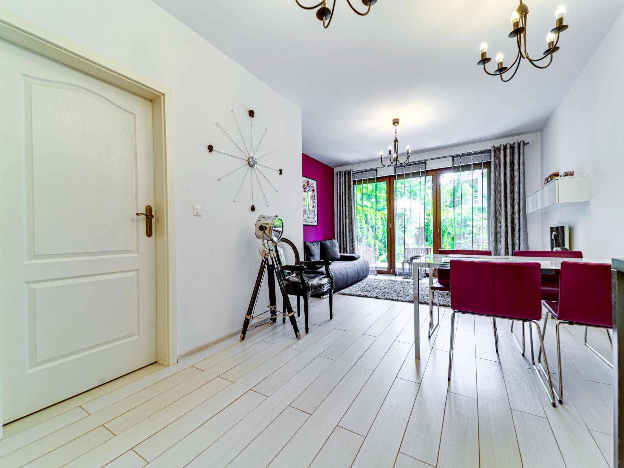 "Apartament Olszówka", 2-Zimmer-Wohnung 50 m2, im Erdgeschoss. Komfortabel und modern eingerichtet: offenes Wohn-/Esszimmer mit 1 Doppeldiwanbett (160 cm, Länge 220 cm), Flachbildschirm. Ausgang zur Terrasse. 1 Zimmer 12 m2 mit 1 franz. Bett (140 cm, Länge 220 cm). Offene Küche (Backofen, Geschirrspüler, 4 Induktionskochplatten, Mikrowelle, elektrische Kaffeemaschine). Dusche/WC. Terrasse, kleiner Garten 21 m2. Terrassenmöbel. Zur Verfügung: Waschmaschine, Wäschetrockner, Bügeleisen, Haartrockner. Internet (WLAN, gratis). Garage. Bitte beachten: 1 kleines Haustier/Hund erlaubt. TV nur PL. Rauchmelder.