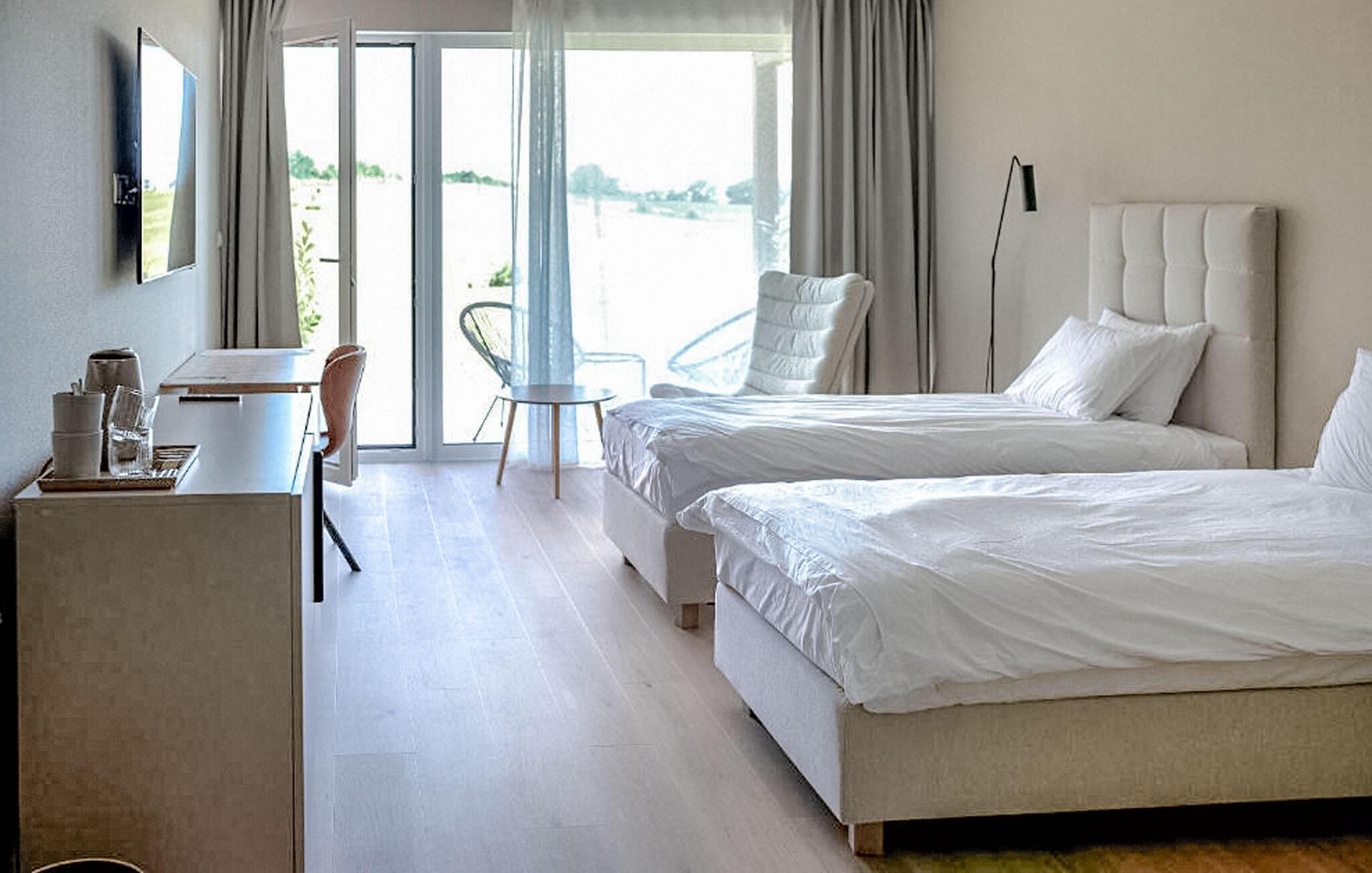 Diesen können Sie auf der Terrasse genießen und dabei den Blick über die grüne Landschaft schweifen lassen. Eingebettet in die ruhige Umgebung eines Golfplatzes und umgeben von malerischen Seen, ist dies der perfekte Rückzugsort für eine erholsame Auszeit.