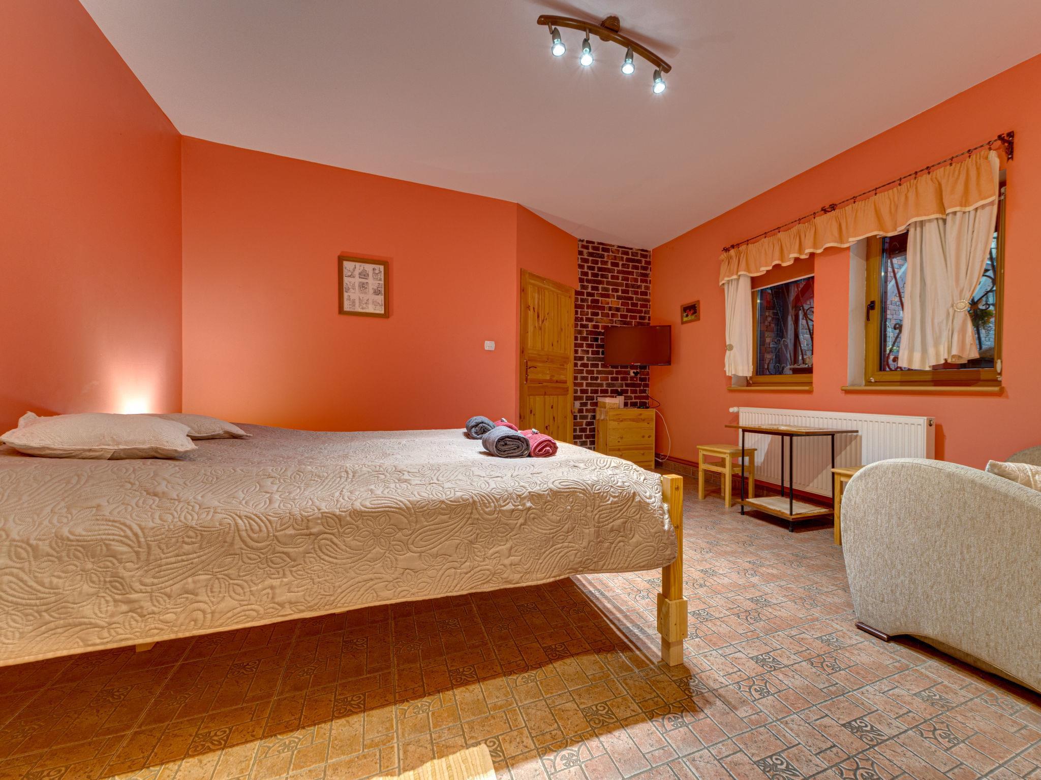 Schönes, rustikales Einfamilienhaus "Gosciniec Pod Dwoma Sercami", Baujahr 1930, renoviert im Jahre 2006, umgeben von Bäumen und Wiesen. Am Ortsrand, ruhige, sonnige Lage, 5 km vom See, im Grünen, im Wald. Zur Mitbenutzung: Grundstück 1 ha (eingezäunt), gepflegter Garten Pflanzen und Bäumen, Wiese 4'000 m2 (eingezäunt), Teich, Aufstellpool rund (5 m Durchmesser, saisonale Verfügbarkeit: 01.Jun. - 15.Sep.). Sitzplatz (28 m2), Gartenmöbel, Grill (Schaukel). Im Hause: Wireless LAN, Tischfussball, Zentralheizung. Frühstück Vollpension Halbpension möglich auf Anfrage (extra). Parkplatz (für 5 Autos) auf dem Grundstück. Einkaufsgeschäft 5 km, Supermarkt 5 km, Bushaltestelle 1 km, Bahnstation 5 km, Sandstrand 5 km, Freibad 1.5 km, Badesee 5 km. Reitstall 1.5 km. Bitte beachten: Angeln (mit Bewilligung). Der Besitzer wohnt auf dem gleichen Grundstück. Es gibt im Wald eine Möglichkeit zum Schwimmen (Wasserfläche von 3 ha). Fischteiche (Forelle, Schlei, Karpfen - gegen Gebühr) 3 km. Gelände mit 20 Zuchtteichen (keine Angelmöglichkeit) 500 m. Auf Anfrage (nach früherer Vereinbarung): Frühstück 15PLN/Person, Mittagessen 35PLN/Person, Abendessen 15PLN/Person. Gruppen von jungen Leuten werden erst nach Zustimmung des Eigentümers aufgenommen. In diesem Fall wird die Kaution auf 1.000 PLN erhöht.