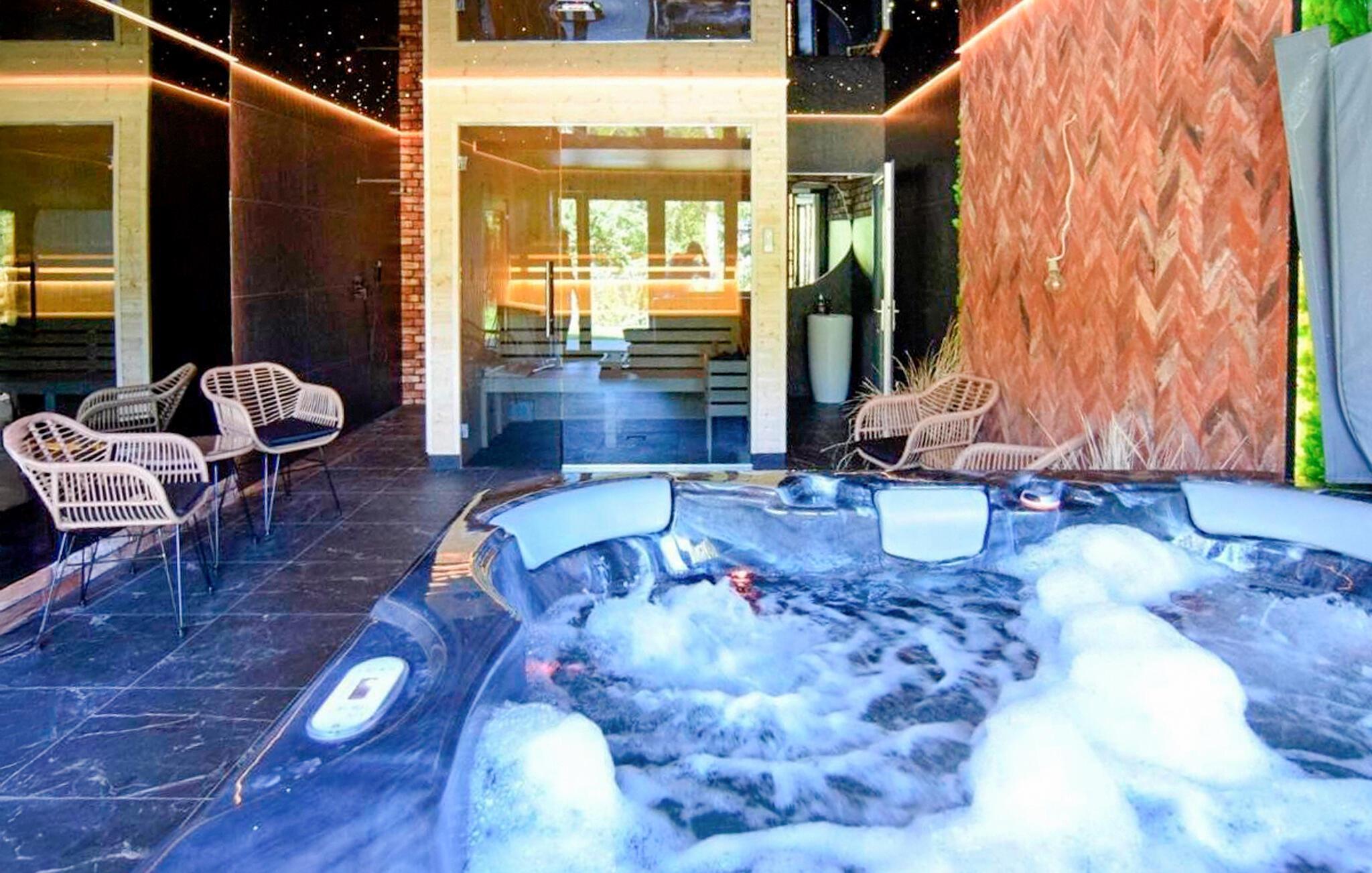 Die moderne, hochwertige Einrichtung und die lichtdurchfluteten Räume schaffen eine stilvolle Wohlfühlatmosphäre. Erkunden Sie das großzügige Haus mit zwei Wohneinheiten und erleben die stilvollen Hausbereiche mit Backsteinwänden, Holzverkleidung und offener Galerie. Erleben Sie pure Entspannung im hauseigenen Wellnessbereich mit Sauna und Whirlpool oder genießen Sie ein erfrischendes Bad im Swimmingpool im Freien. Abends lädt Sie der Grillbereich zu geselligen Stunden ein, während der Sonnenuntergang den See in warme Farben taucht – ein perfekter Ort für Erholung und gemeinsame Zeit mit Ihren Liebsten.