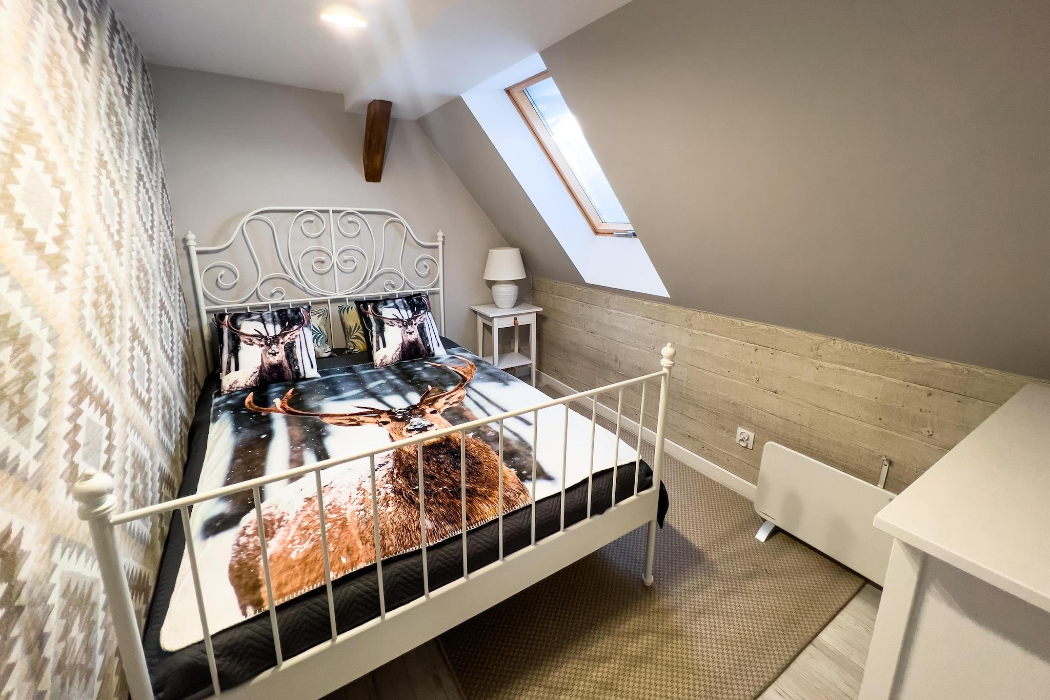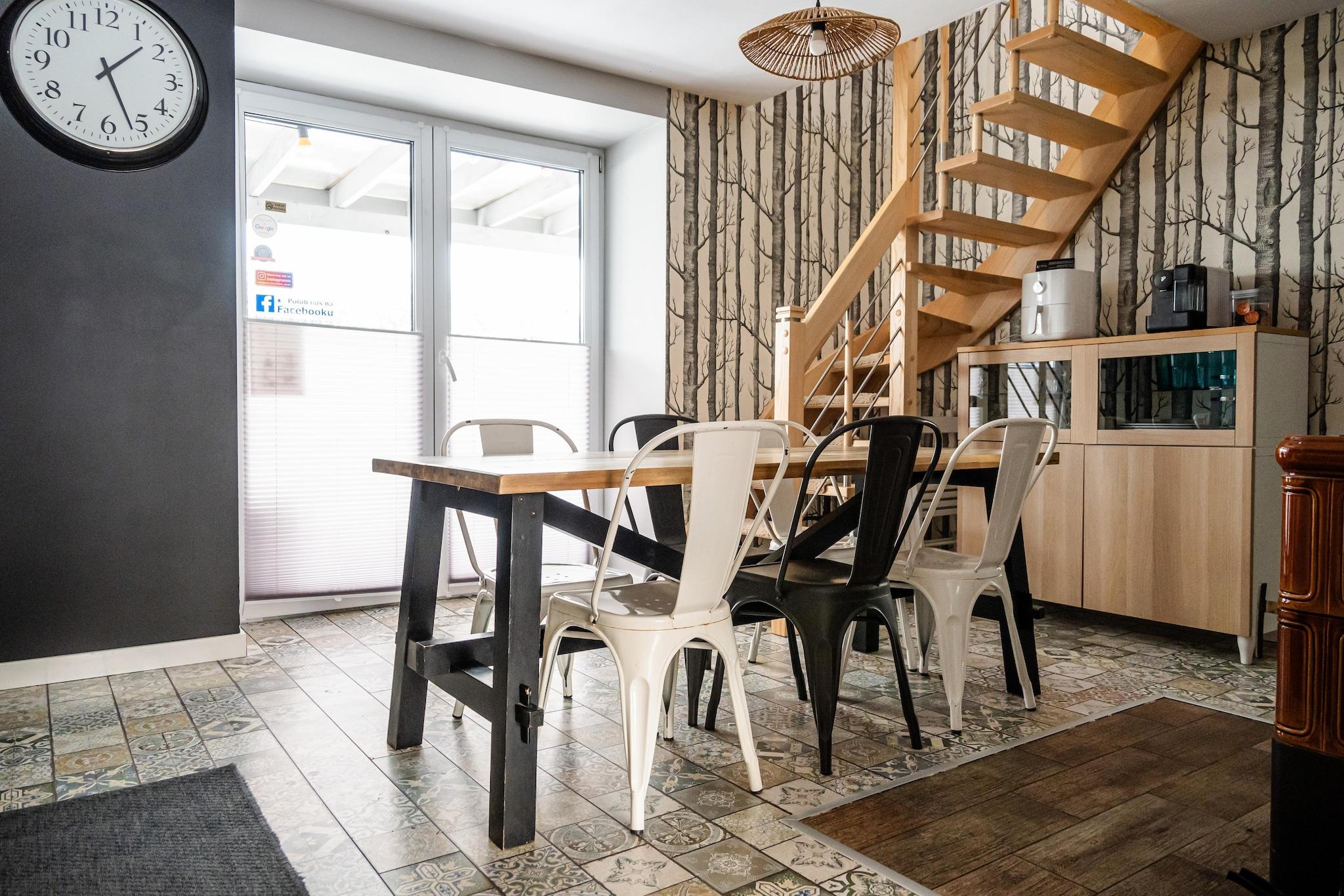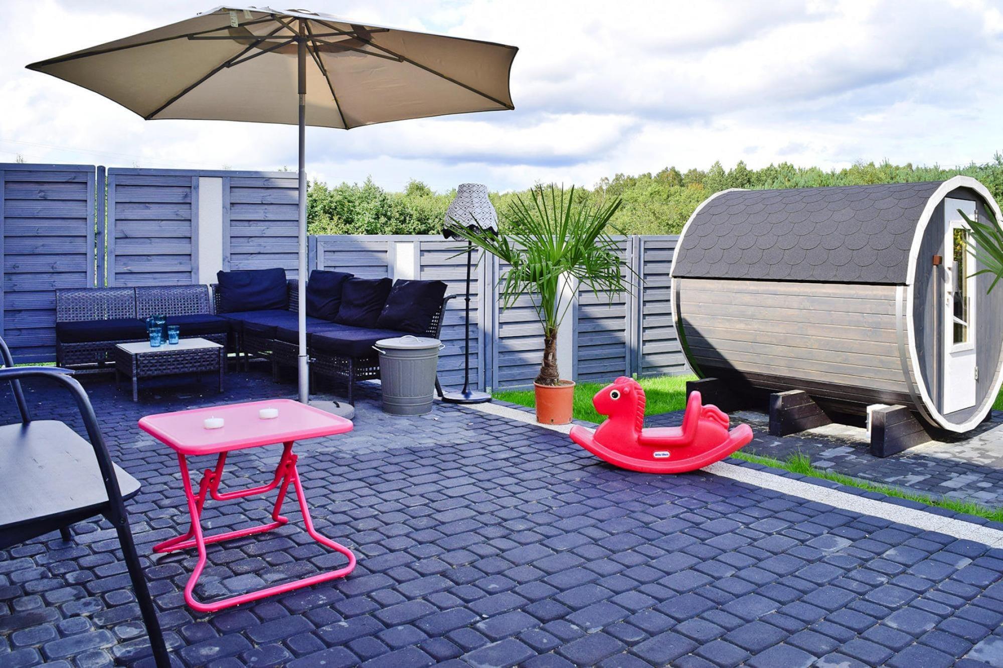 Ein komfortables Ferienhaus mit hervorragender Freizeitausstattung (Sauna, Sommerpool) in traumhafter Lage – einem kleinen Badeort direkt am Meer, nur 300 Meter vom Haus entfernt. Dieses geräumige, zweistöckige Ferienhaus erwartet Sie auf einem privaten, umzäunten Grundstück. Im Erdgeschoss befinden sich ein Wohnzimmer (mit TV und Doppelschlafsofa), ein Esszimmer mit Kamin, eine gut ausgestattete Küche (mit Backofen, Geschirrspüler, Kaffeemaschine und Waschmaschine), ein Schlafzimmer mit Doppelbett und ein Badezimmer mit Dusche. Im Obergeschoss befinden sich drei weitere separate Schlafzimmer. Das Haus verfügt über eine überdachte Terrasse mit Gartenmöbeln, Sonnenliegen und Grillmöglichkeit. Elektrische Heizung und ein Kamin sind vorhanden (Holz ist im Preis inbegriffen). WLAN steht Ihnen zur Verfügung. Auf dem gepflegten Grundstück (zur exklusiven Nutzung durch die Gäste) befinden sich ein Sommerpool (geöffnet vom 1. Mai bis 15. September), eine Sauna und ein sicherer Parkplatz. Im Preis inbegriffen: Bettwäsche, Handtücher, Strom, Wasser, Heizung, Brennholz, Sauna, Sommerpool (1. Mai – 15. September), Internet, Parkplatz und Endreinigung. Kinderbett und Hochstuhl sind auf Anfrage erhältlich. Die unmittelbare Umgebung bietet ungestörte Erholung inmitten der Natur. Es lohnt sich, den nahegelegenen See mit dem Fahrrad (oder zu Fuß) zu erkunden und die charmanten Sandstrände zu besuchen. Der See ist sehr sauber und lädt zum Schwimmen und Angeln (Hecht, Aal, Schleie) ein. Sie können auch den größeren Zarnowieckie-See besuchen, wo Sie Wassersportausrüstung mieten können. Der Strand am Meer ist 12 km entfernt. Hier ist pure Entspannung garantiert, denn selbst in der Hochsaison ist es nicht überlaufen. Die Aussicht ist atemberaubend, insbesondere im Bereich der Lubiatowskie-Dünen.